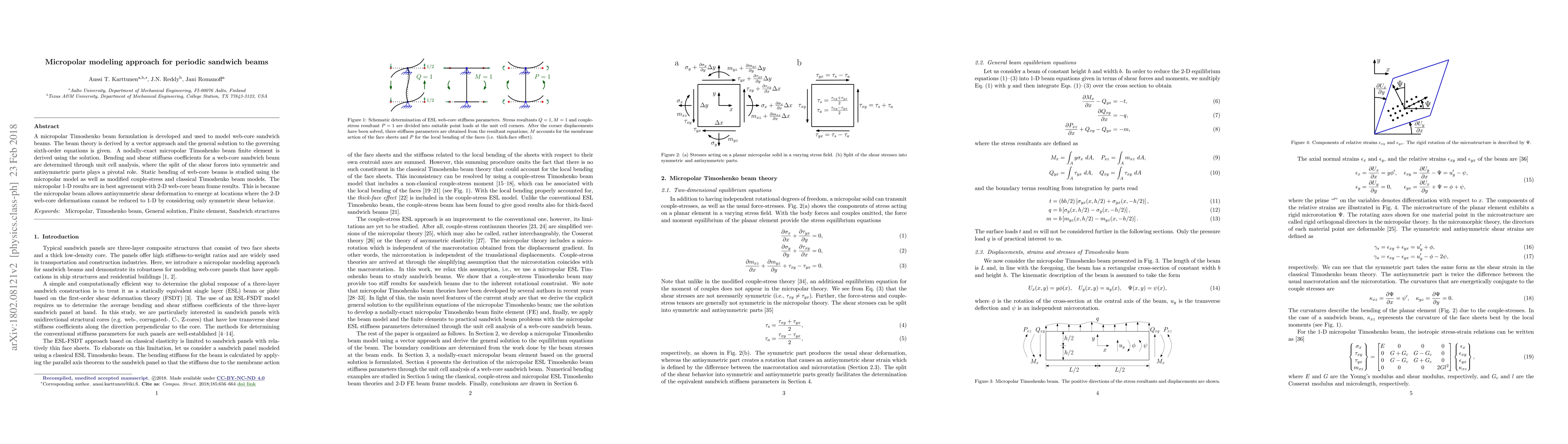 This paper develops a micropolar Timoshenko beam theory to model web-core sandwich beams, deriving a nodally-exact micropolar Timoshenko beam element and determining bending and shear stiffnesses through unit cell analysis. The micropolar model shows superior agreement with 2-D web-core beam frame results by accounting for antisymmetric shear deformation.