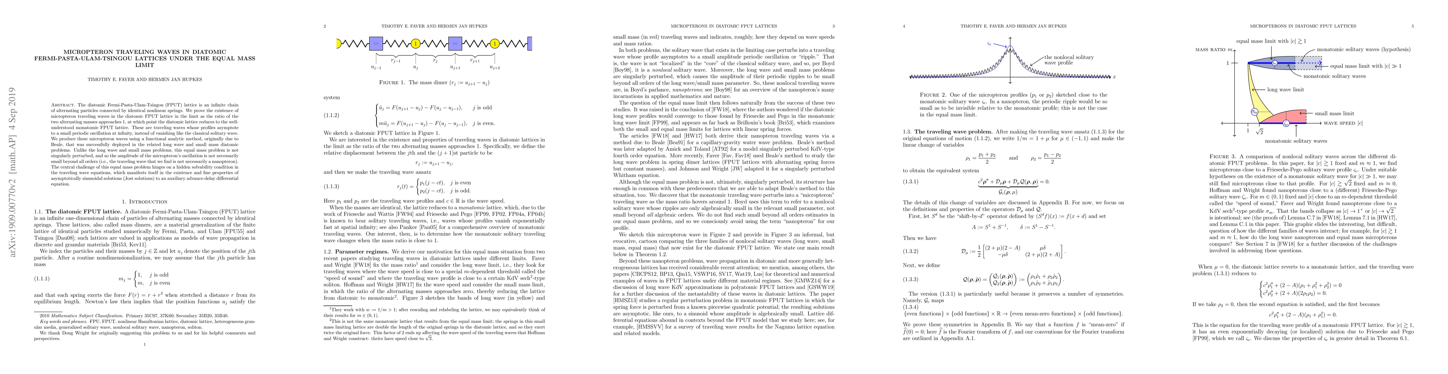 This paper proves the existence of micropteron traveling waves in diatomic FPUT lattices as the mass ratio approaches 1, revealing waves that oscillate rather than vanish, using a functional analytic method. Unlike other cases, these waves are not necessarily small amplitude, due to a hidden solvability condition linked to auxiliary differential equations.