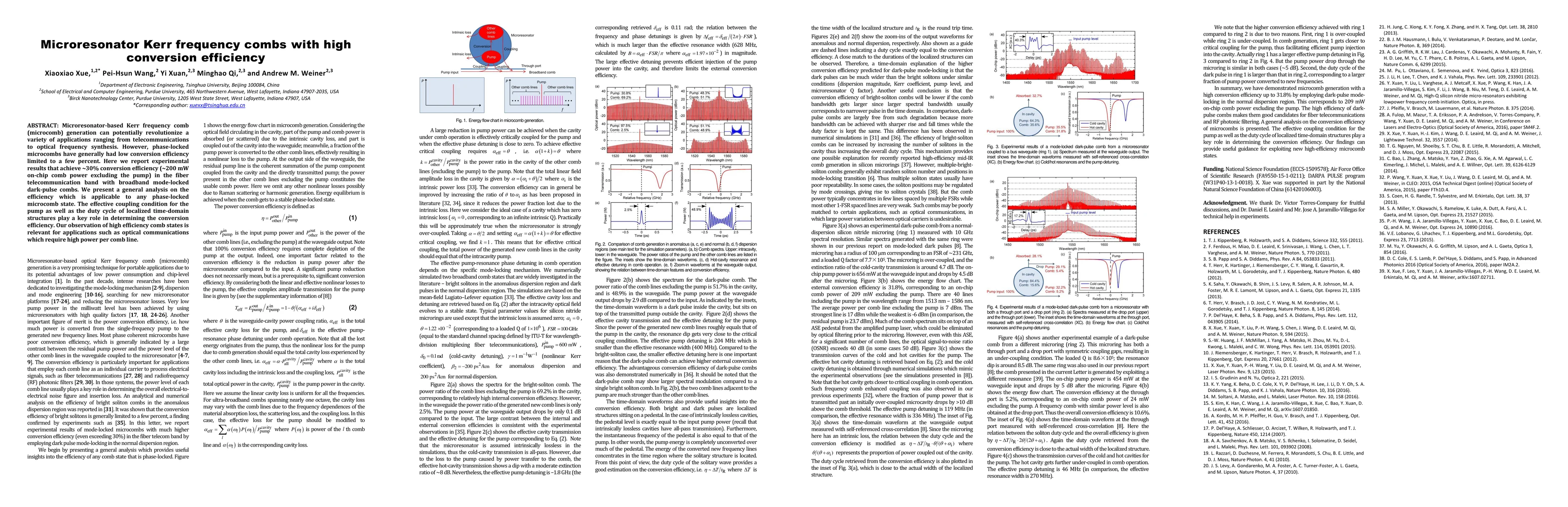This paper reports a significant improvement in the conversion efficiency of microresonator Kerr frequency combs, achieving ~30% efficiency in the fiber telecommunication band. The study highlights the effective coupling condition and duty cycle of dark-pulse combs as key factors in enhancing efficiency, which is crucial for high-power applications in optical communications.