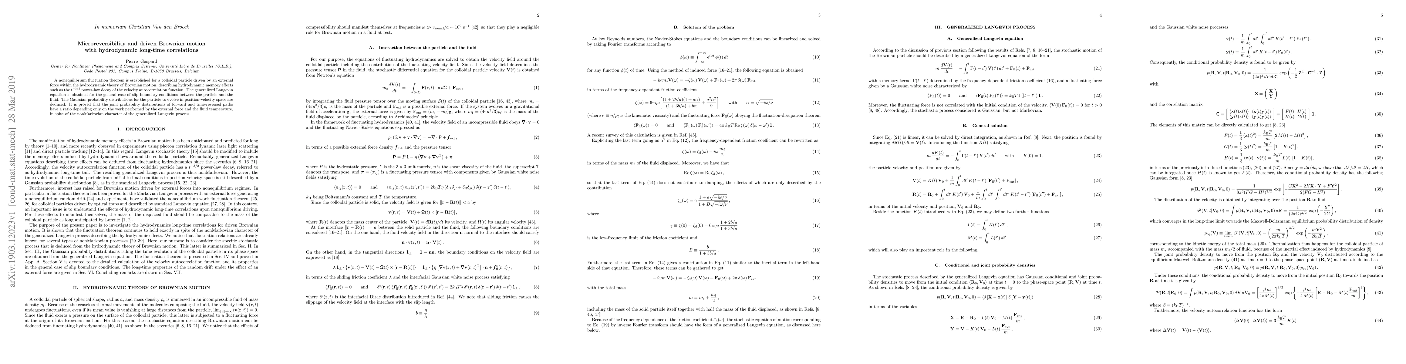 This paper establishes a nonequilibrium fluctuation theorem for a colloidal particle under an external force, incorporating hydrodynamic effects and long-time correlations. It derives the generalized Langevin equation for slip boundary conditions and proves a ratio for the joint probability distributions of forward and reversed paths, dependent on the external work and temperature, despite the nonMarkovian nature of the process.
