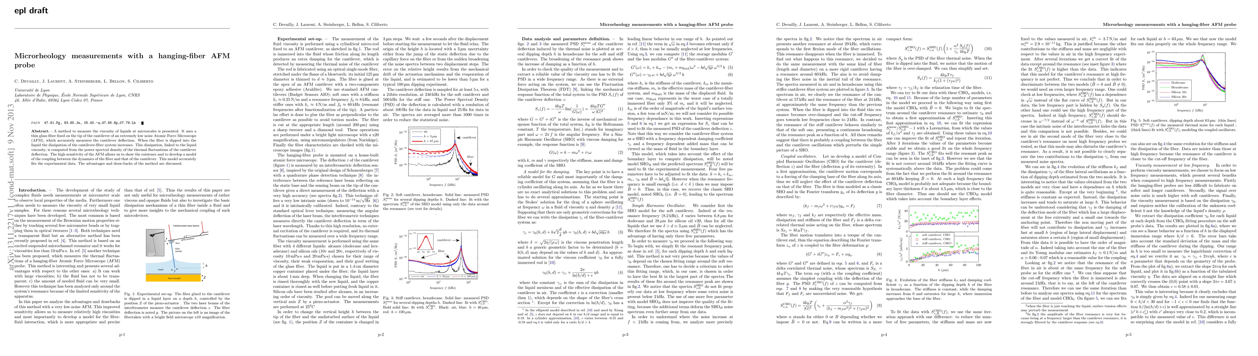 The paper introduces a high-precision microrheology measurement technique using a hanging-fiber AFM probe, along with a model that accounts for fiber-cantilever coupling and accurately fits experimental data.