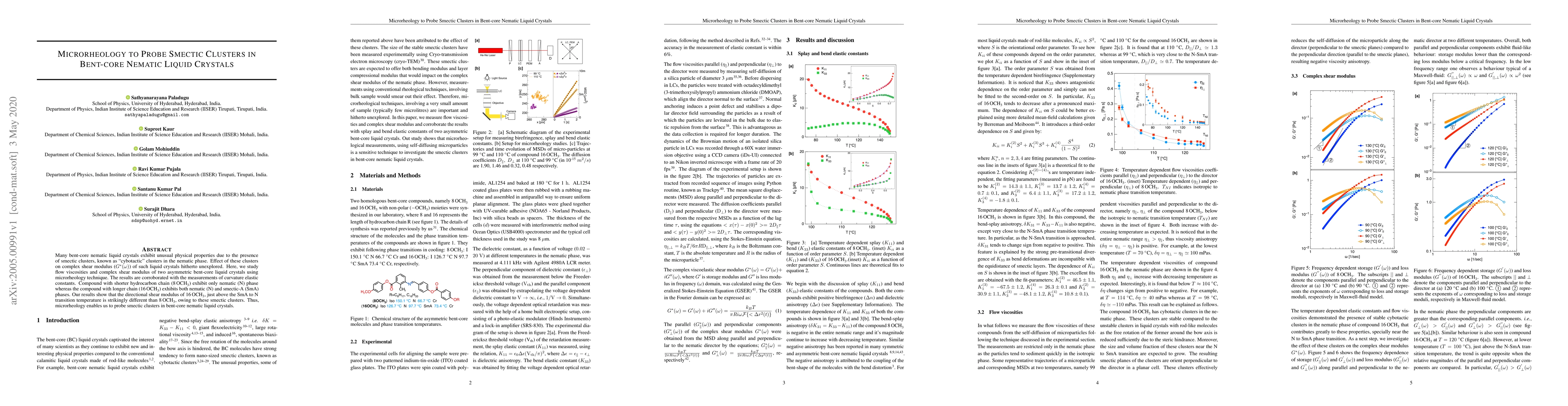 This study investigates the effect of smectic clusters in bent-core nematic liquid crystals using microrheology, revealing significant differences in the directional shear modulus between compounds with different chain lengths. The compound with a longer chain exhibits both nematic and smectic-A phases, highlighting the role of smectic clusters in altering the material's mechanical properties.