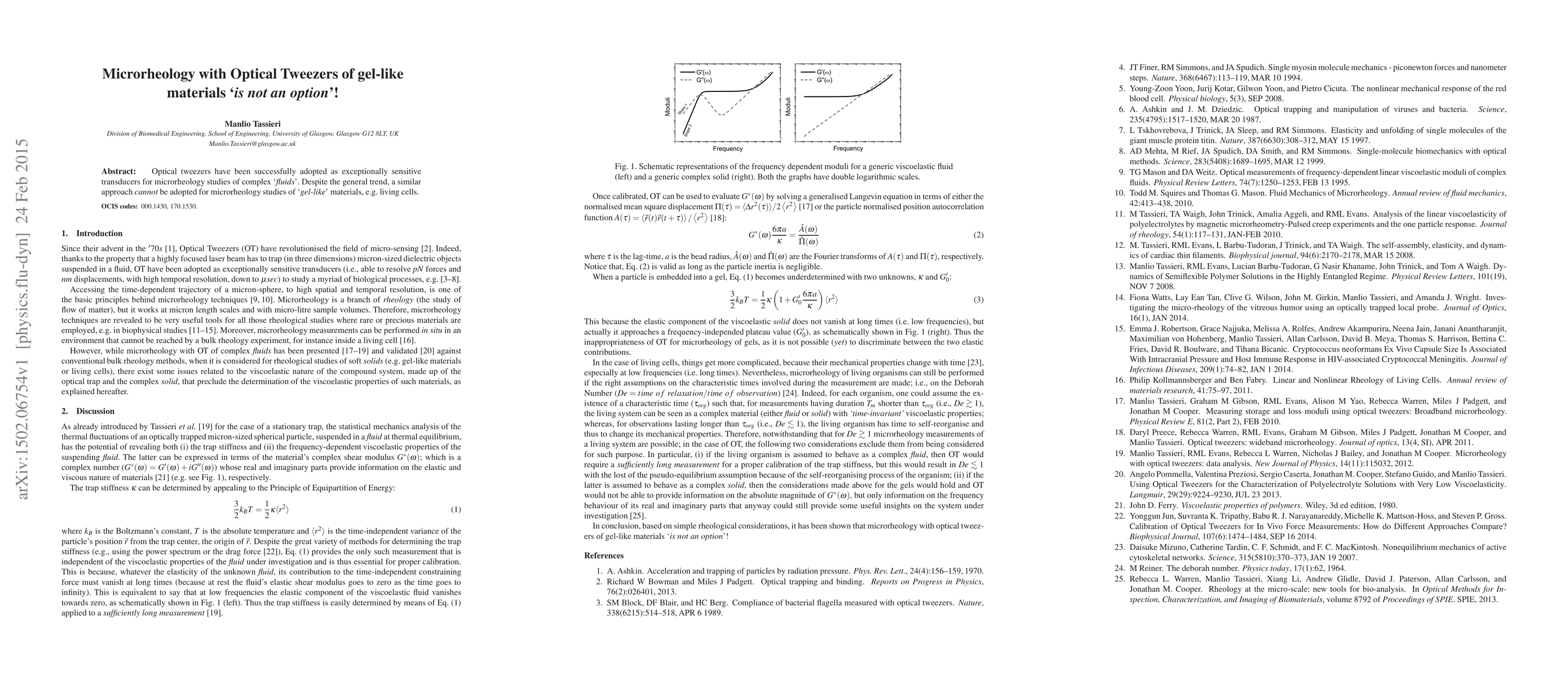 Summary: Optical tweezers, effective for microrheology in complex fluids, are unsuitable for studying gel-like materials such as living cells due to their structural differences. This highlights the need for alternative methods for such materials.