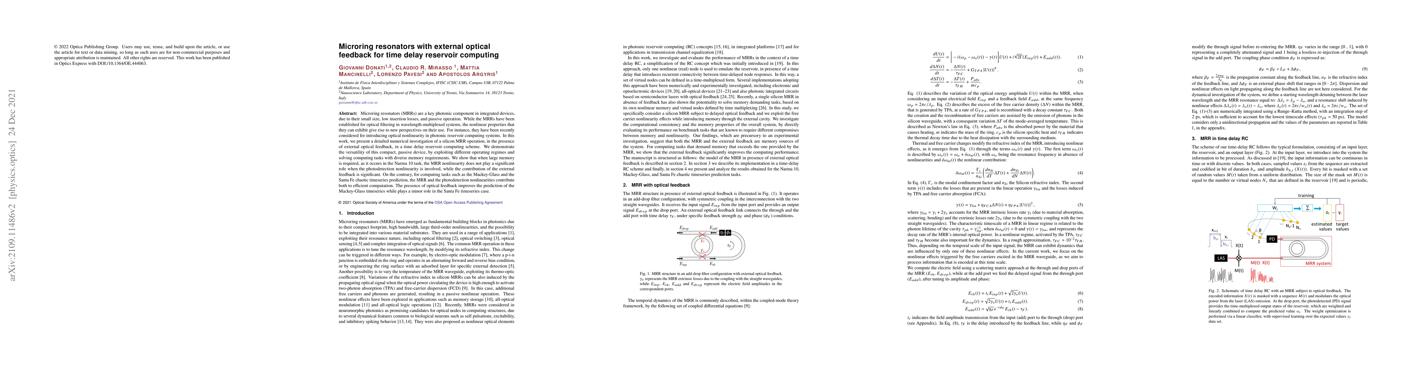 This paper investigates the use of silicon microring resonators with external optical feedback in photonic reservoir computing systems, demonstrating their effectiveness in solving various computing tasks. The study highlights that while MRR nonlinearity is less significant for large memory tasks, it, along with photodetection nonlinearity, enhances performance for tasks like Mackey-Glass and Santa Fe timeseries prediction.