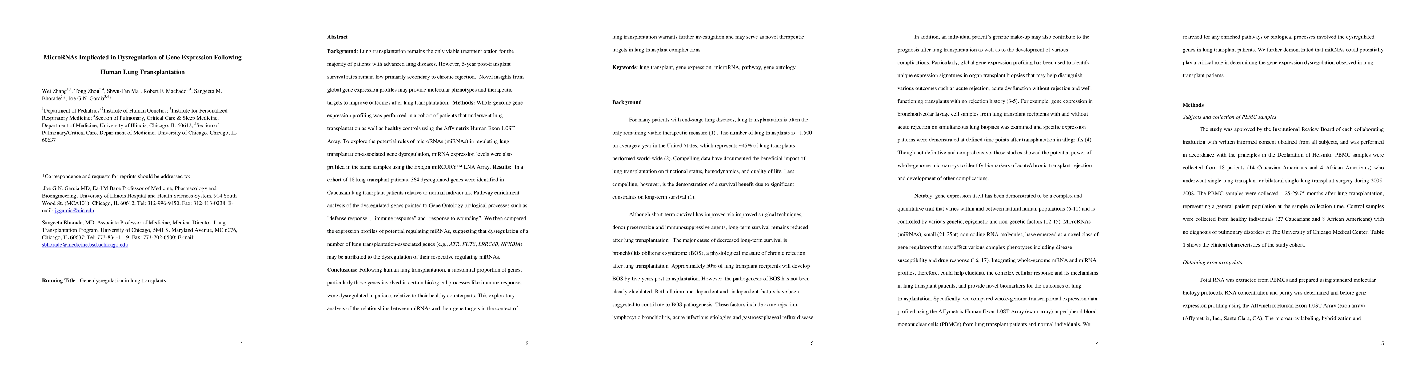 This study reveals that human lung transplantation leads to significant gene expression dysregulation, notably in immune response and defense pathways. MicroRNAs are found to play a role in controlling these altered genes, suggesting potential therapeutic targets to enhance post-transplant outcomes.