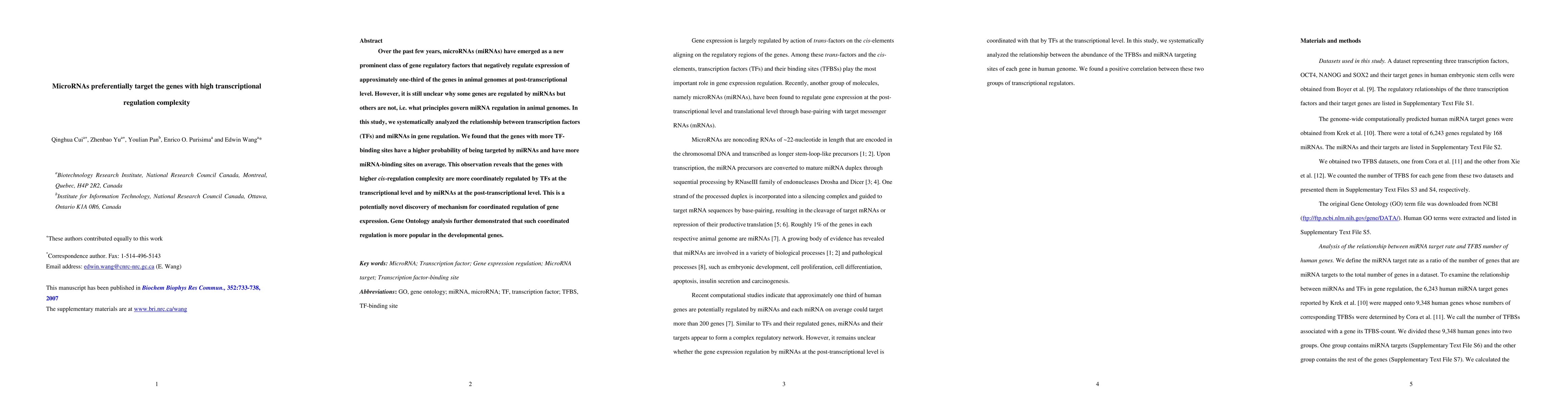 This study reveals that genes with higher transcriptional regulation complexity, indicated by more transcription factor binding sites, are more likely to be targeted by microRNAs. Such coordinated regulation is particularly prevalent in developmental genes, suggesting a mechanism for the integrated control of gene expression.