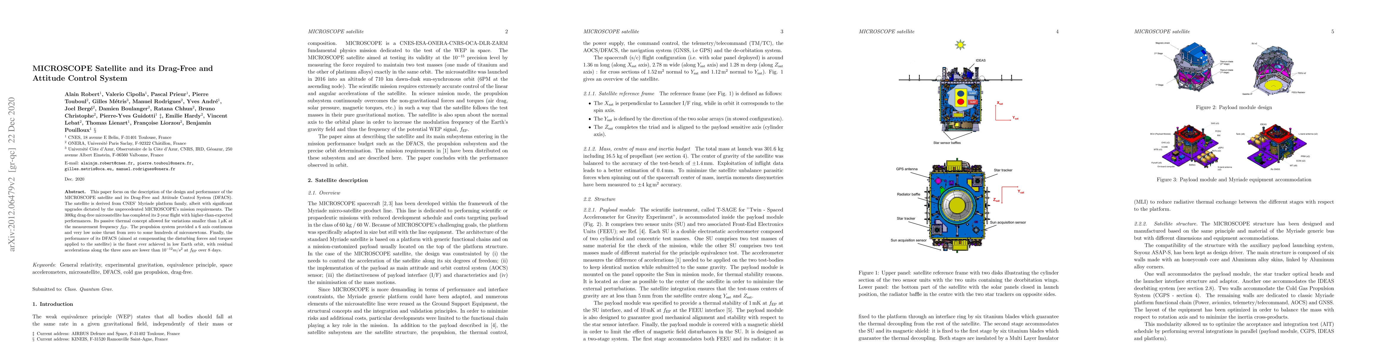 The MICROSCOPE satellite achieved exceptional performance in its 2-year mission, including precise drag-free control and thermal stability, with residual accelerations as low as $10^{-12} m/s^2$.