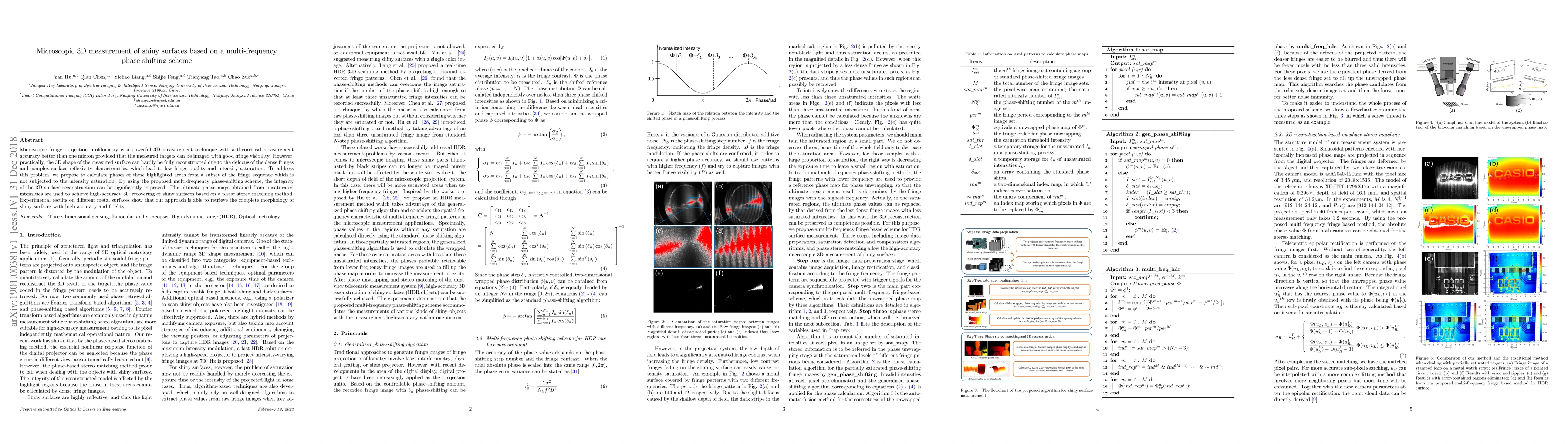 The paper presents a novel multi-frequency phase-shifting scheme for high-accuracy microscopic 3D measurement of shiny surfaces, addressing defocus and intensity saturation issues.