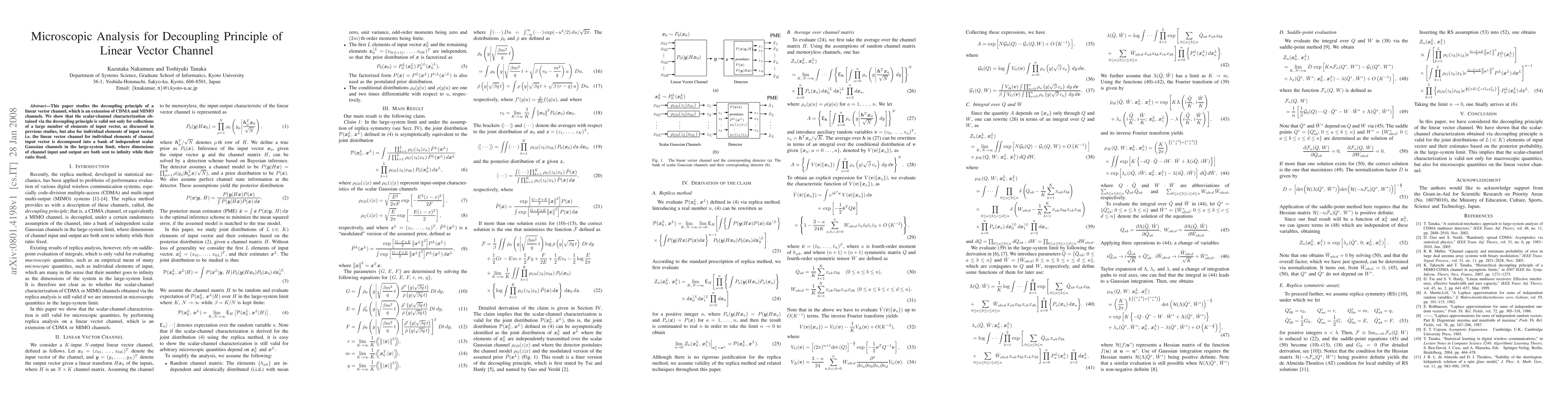 This paper studies the decoupling principle of a linear vector channel, which is an extension of CDMA and MIMO channels. We show that the scalar-channel characterization obtained via the decoupling principle is valid not only for collections of a large number of elements of input vector, as discussed in previous studies, but also for individual elements of input vector, i.e. the linear vector channel for individual elements of channel input vector is decomposed into a bank of independent scalar Gaussian channels in the large-system limit, where dimensions of channel input and output are both sent to infinity while their ratio fixed.