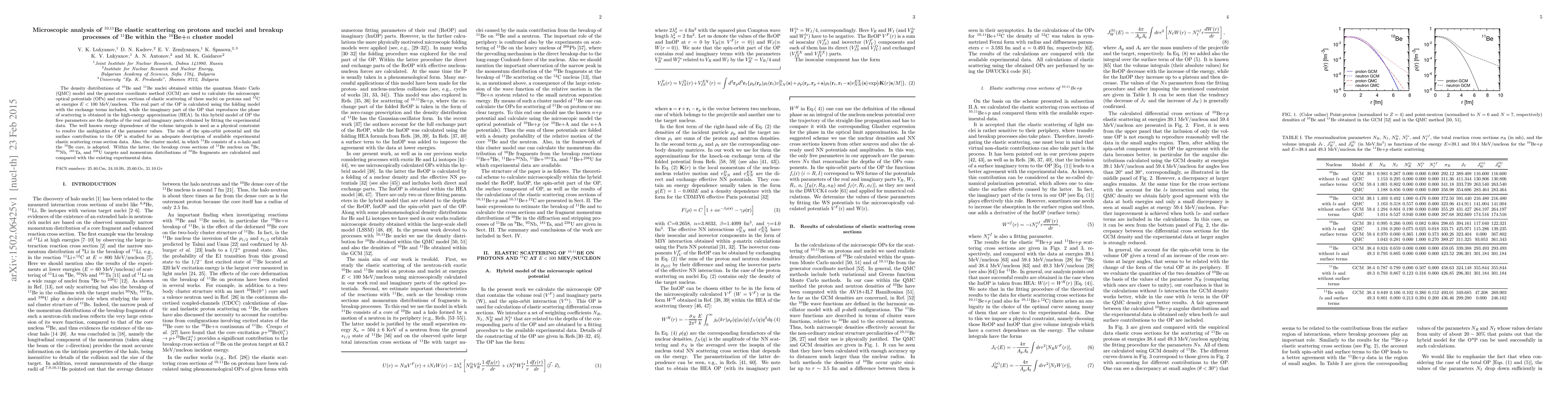 The density distributions of $^{10}$Be and $^{11}$Be nuclei obtained within the quantum Monte Carlo (QMC) model and the generator coordinate method (GCM) are used to calculate the microscopic optical potentials (OPs) and cross sections of elastic scattering of these nuclei on protons and $^{12}$C at energies $E<100$ MeV/nucleon. The real part of the OP is calculated using the folding model with the exchange terms included, while the imaginary part of the OP that reproduces the phase of scattering is obtained in the high-energy approximation (HEA). In this hybrid model of OP the free parameters are the depths of the real and imaginary parts obtained by fitting the experimental data. The well known energy dependence of the volume integrals is used as a physical constraint to resolve the ambiguities of the parameter values. The role of the spin-orbit potential and the surface contribution to the OP is studied for an adequate description of available experimental elastic scattering cross section data. Also, the cluster model, in which $^{11}$Be consists of a $n$-halo and the $^{10}$Be core, is adopted. Within the latter, the breakup cross sections of $^{11}$Be nucleus on $^{9}$Be, $^{93}$Nb, $^{181}$Ta, and $^{238}$U targets and momentum distributions of $^{10}$Be fragments are calculated and compared with the existing experimental data.