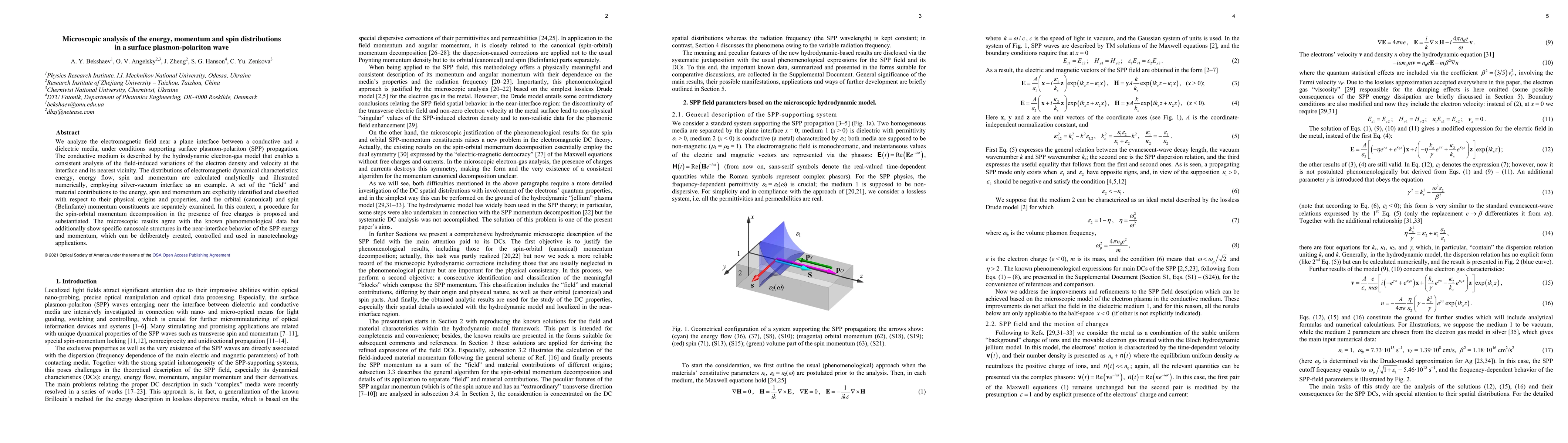 Researchers analyzed surface plasmon-polariton waves near a conductive-dielectric interface, revealing nanoscale structures in energy and momentum distributions that can be controlled for nanotechnology applications.