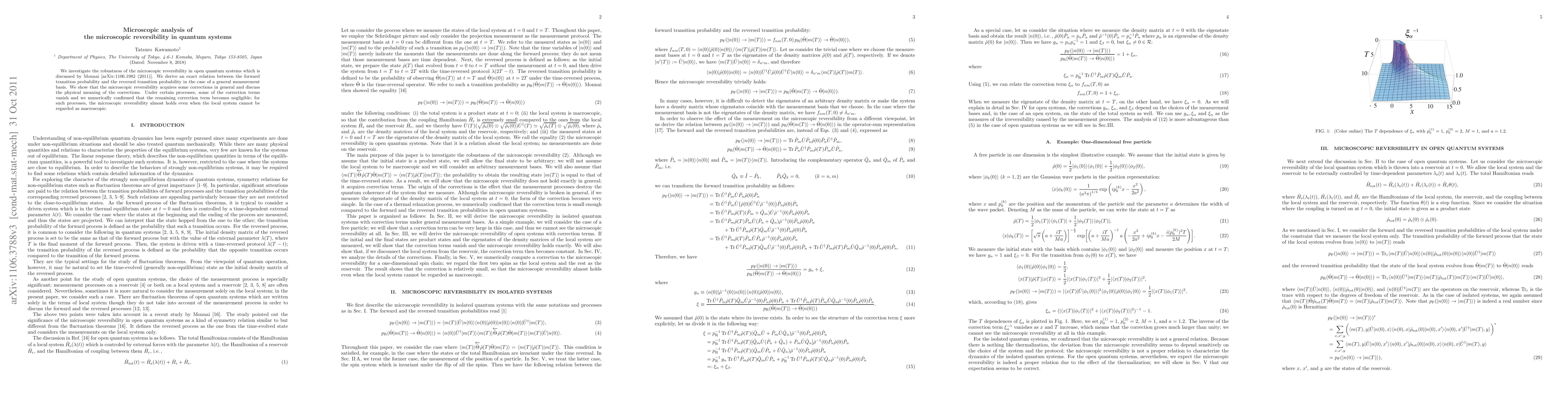 We investigate the robustness of the microscopic reversibility in open quantum systems which is discussed by Monnai [arXiv:1106.1982 (2011)]. We derive an exact relation between the forward transition probability and the reversed transition probability in the case of a general measurement basis. We show that the microscopic reversibility acquires some corrections in general and discuss the physical meaning of the corrections. Under certain processes, some of the correction terms vanish and we numerically confirmed that the remaining correction term becomes negligible; the microscopic reversibility almost holds even when the local system cannot be regarded as macroscopic.
