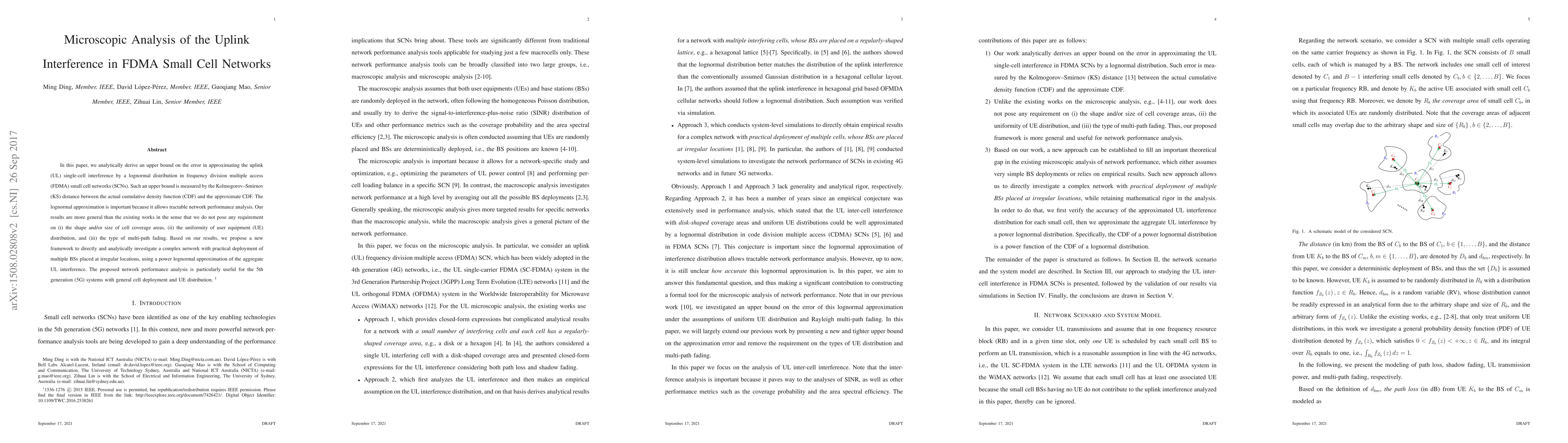 In this paper, we analytically derive an upper bound on the error in approximating the uplink (UL) single-cell interference by a lognormal distribution in frequency division multiple access (FDMA) small cell networks (SCNs). Such an upper bound is measured by the Kolmogorov Smirnov (KS) distance between the actual cumulative density function (CDF) and the approximate CDF. The lognormal approximation is important because it allows tractable network performance analysis. Our results are more general than the existing works in the sense that we do not pose any requirement on (i) the shape and/or size of cell coverage areas, (ii) the uniformity of user equipment (UE) distribution, and (iii) the type of multi-path fading. Based on our results, we propose a new framework to directly and analytically investigate a complex network with practical deployment of multiple BSs placed at irregular locations, using a power lognormal approximation of the aggregate UL interference. The proposed network performance analysis is particularly useful for the 5th generation (5G) systems with general cell deployment and UE distribution.