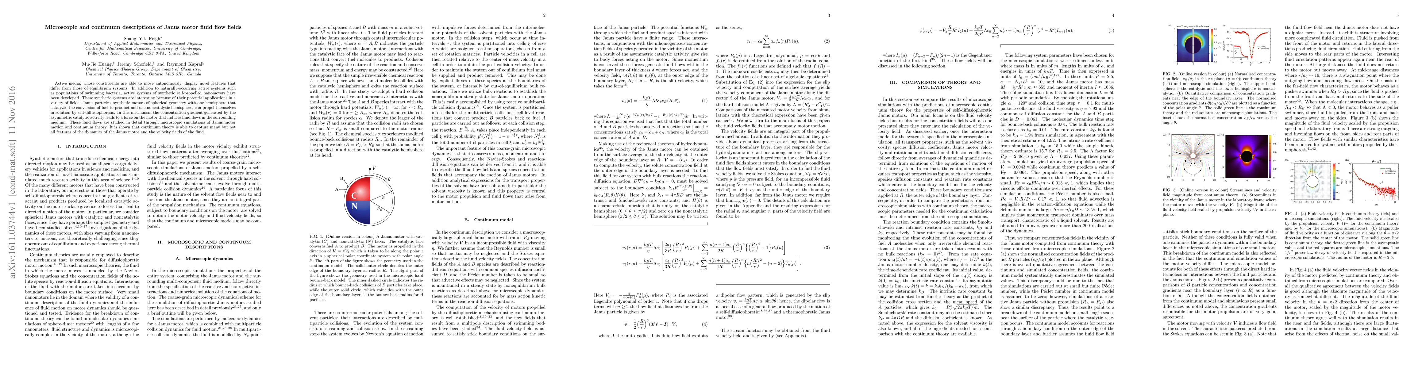 This paper investigates the fluid flow fields generated by Janus motors using both microscopic simulations and continuum theory. While continuum theory captures many dynamics, it falls short in fully describing the intricate details of the fluid flows around self-propelled Janus particles.