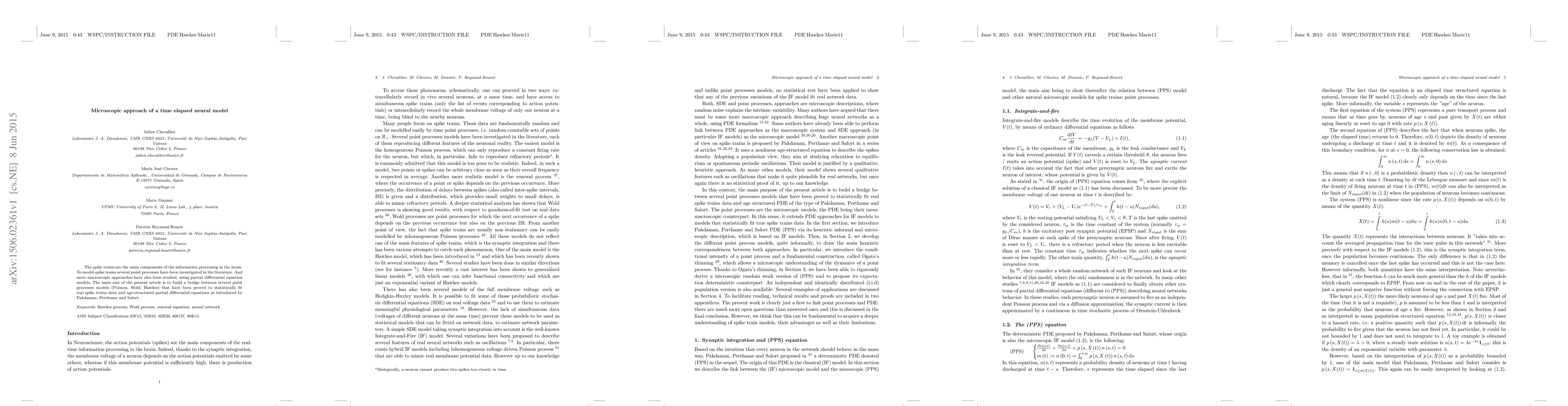 The spike trains are the main components of the information processing in the brain. To model spike trains several point processes have been investigated in the literature. And more macroscopic approaches have also been studied, using partial differential equation models. The main aim of the present article is to build a bridge between several point processes models (Poisson, Wold, Hawkes) that have been proved to statistically fit real spike trains data and age-structured partial differential equations as introduced by Pakdaman, Perthame and Salort.