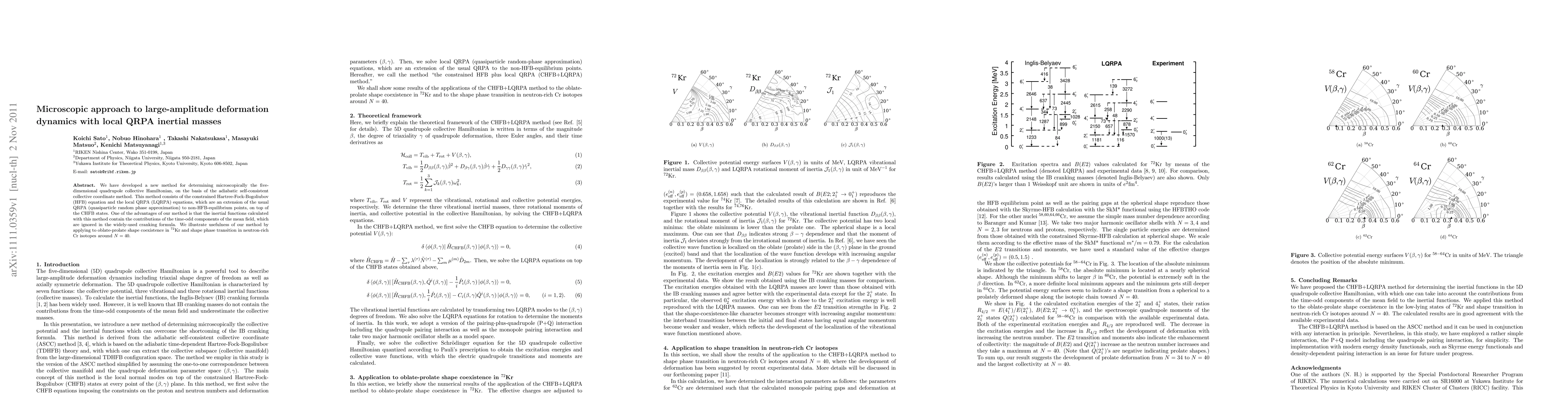 We have developed a new method for determining microscopically the fivedimensional quadrupole collective Hamiltonian, on the basis of the adiabatic self-consistent collective coordinate method. This method consists of the constrained Hartree-Fock-Bogoliubov (HFB) equation and the local QRPA (LQRPA) equations, which are an extension of the usual QRPA (quasiparticle random phase approximation) to non-HFB-equilibrium points, on top of the CHFB states. One of the advantages of our method is that the inertial functions calculated with this method contain the contributions of the time-odd components of the mean field, which are ignored in the widely-used cranking formula. We illustrate usefulness of our method by applying to oblate-prolate shape coexistence in 72Kr and shape phase transition in neutron-rich Cr isotopes around N=40.