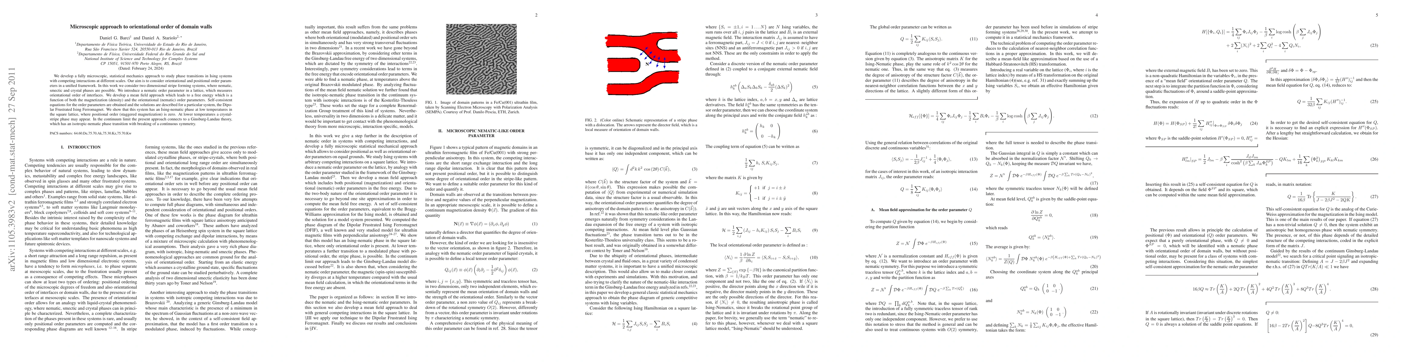 We develop a fully microscopic, statistical mechanics approach to study phase transitions in Ising systems with competing interactions at different scales. Our aim is to consider orientational and positional order parameters in a unified framework. In this work we consider two dimensional stripe forming systems, where nematic, smectic and crystal phases are possible. We introduce a nematic order parameter in a lattice, which measures orientational order of interfaces. We develop a mean field approach which leads to a free energy which is a function of both the magnetization (density) and the orientational (nematic) order parameters. Self-consistent equations for the order parameters are obtained and the solutions are described for a particular system, the Dipolar Frustrated Ising Ferromagnet. We show that this system has an Ising-nematic phase at low temperatures in the square lattice, where positional order (staggered magnetization) is zero. At lower temperatures a crystal-stripe phase may appear. In the continuum limit the present approach connects to a Ginsburg-Landau theory, which has an isotropic-nematic phase transition with breaking of a continuous symmetry.