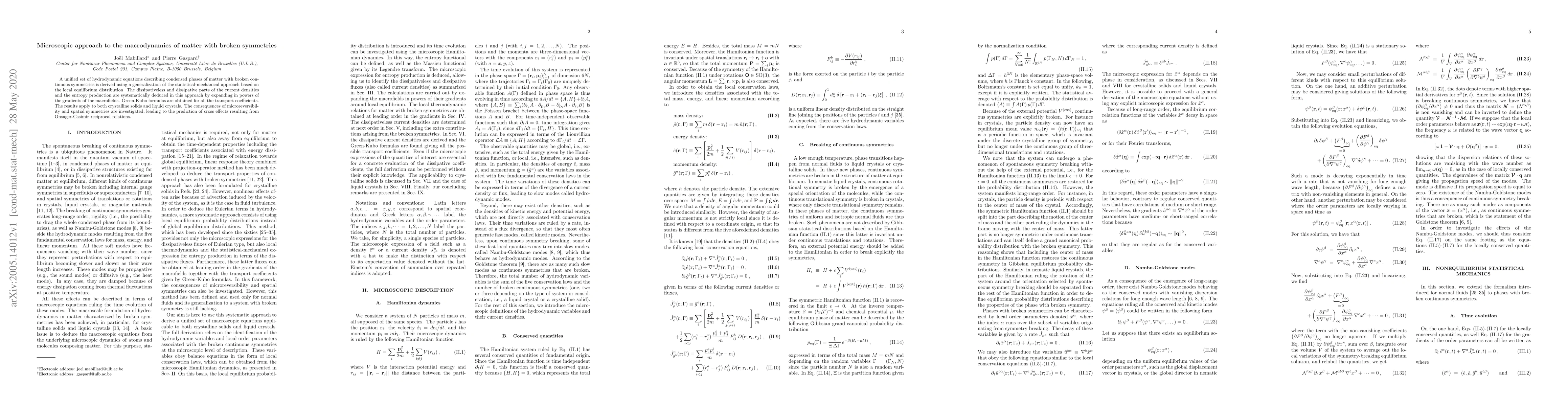 A unified set of hydrodynamic equations describing condensed phases of matter with broken continuous symmetries is derived using a generalization of the statistical-mechanical approach based on the local equilibrium distribution. The dissipativeless and dissipative parts of the current densities and the entropy production are systematically deduced in this approach by expanding in powers of the gradients of the macrofields. Green-Kubo formulas are obtained for all the transport coefficients. The results apply to both crystalline solids and liquid crystals. The consequences of microreversibility and spatial symmetries are investigated, leading to the prediction of cross effects resulting from Onsager-Casimir reciprocal relations.