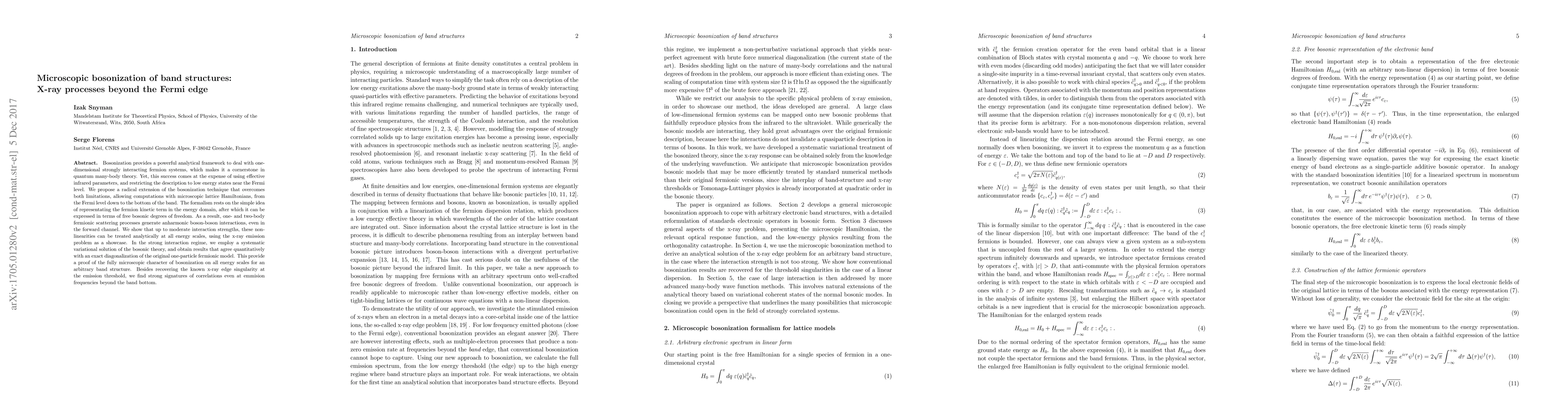 Bosonization provides a powerful analytical framework to deal with one-dimensional strongly interacting fermion systems, which makes it a cornerstone in quantum many-body theory. Yet, this success comes at the expense of using effective infrared parameters, and restricting the description to low energy states near the Fermi level. We propose a radical extension of the bosonization technique that overcomes both limitations, allowing computations with microscopic lattice Hamiltonians, from the Fermi level down to the bottom of the band. The formalism rests on the simple idea of representing the fermion kinetic term in the energy domain, after which it can be expressed in terms of free bosonic degrees of freedom. As a result, one- and two-body fermionic scattering processes generate anharmonic boson-boson interactions, even in the forward channel. We show that up to moderate interaction strengths, these nonlinearities can be treated analytically at all energy scales, using the x-ray emission problem as a showcase. In the strong interaction regime, we employ a systematic variational solution of the bosonic theory, and obtain results that agree quantitatively with an exact diagonalization of the original one-particle fermionic model. This provides a proof of the fully microscopic character of bosonization on all energy scales for an arbitrary band structure. Besides recovering the known x-ray edge singularity at the emission threshold, we find strong signatures of correlations even at emission frequencies beyond the band bottom.
