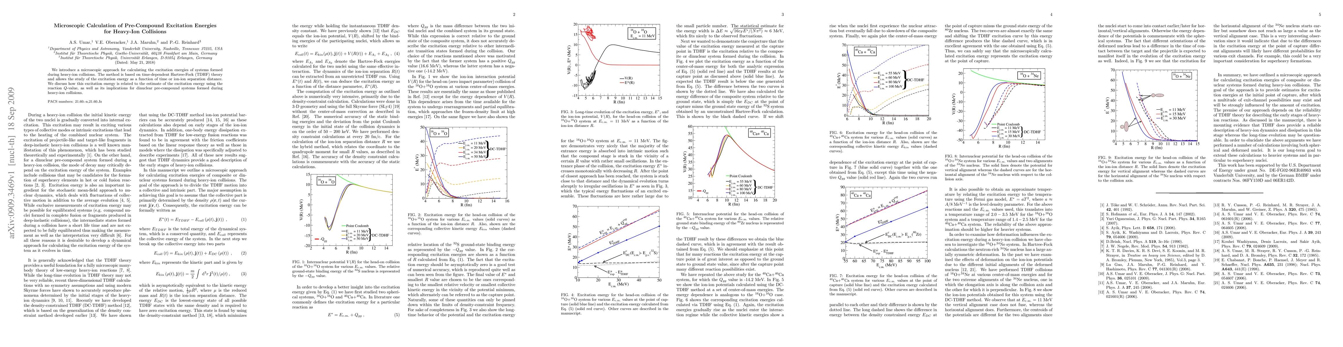 This paper presents a microscopic method using time-dependent Hartree-Fock theory to calculate excitation energies in heavy-ion collisions, comparing these with estimates based on reaction $Q$-values and discussing implications for dinuclear pre-compound systems.