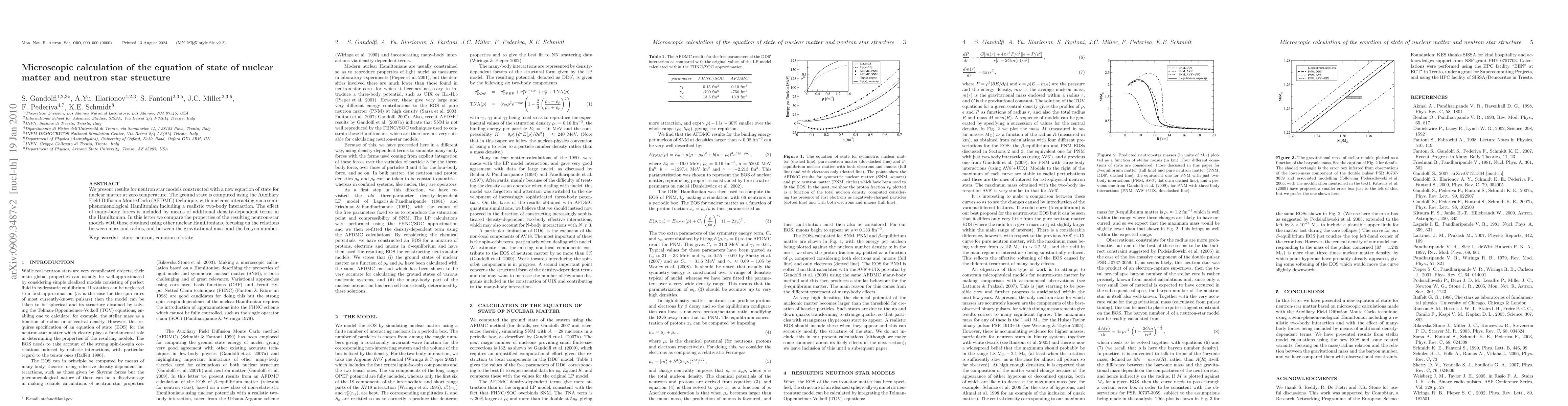 This paper uses the Auxiliary Field Diffusion Monte Carlo technique to compute the equation of state for nuclear matter at zero temperature, focusing on neutron star models. The study compares neutron star properties, such as mass-radius relations, derived from this new equation of state with those from other nuclear Hamiltonians.