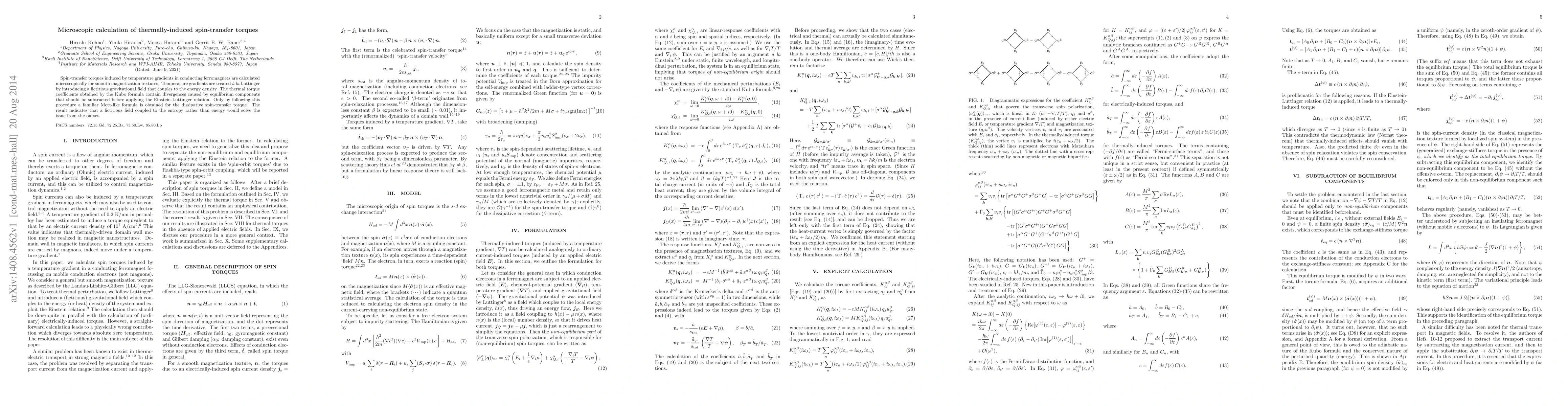 Researchers calculated thermally-induced spin-transfer torques in ferromagnets using a microscopic approach, highlighting the need for a fictitious field coupled to entropy rather than energy.