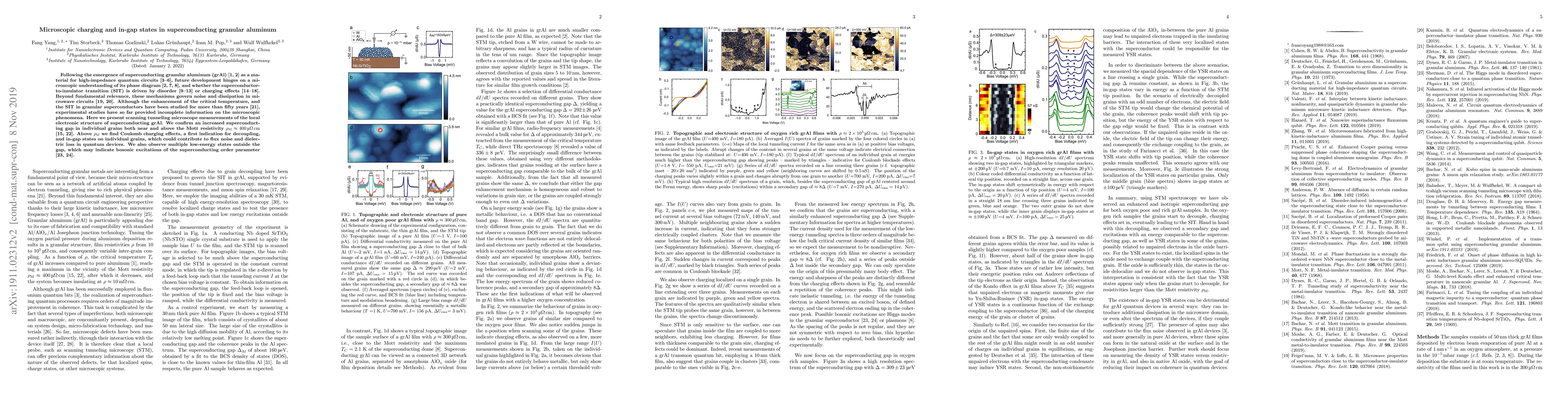 This research offers new insights into the microscopic phenomena governing superconducting granular aluminum, specifically the interplay between superconductivity, charging effects, and in-gap states, which has not been fully elucidated in previous experimental studies.