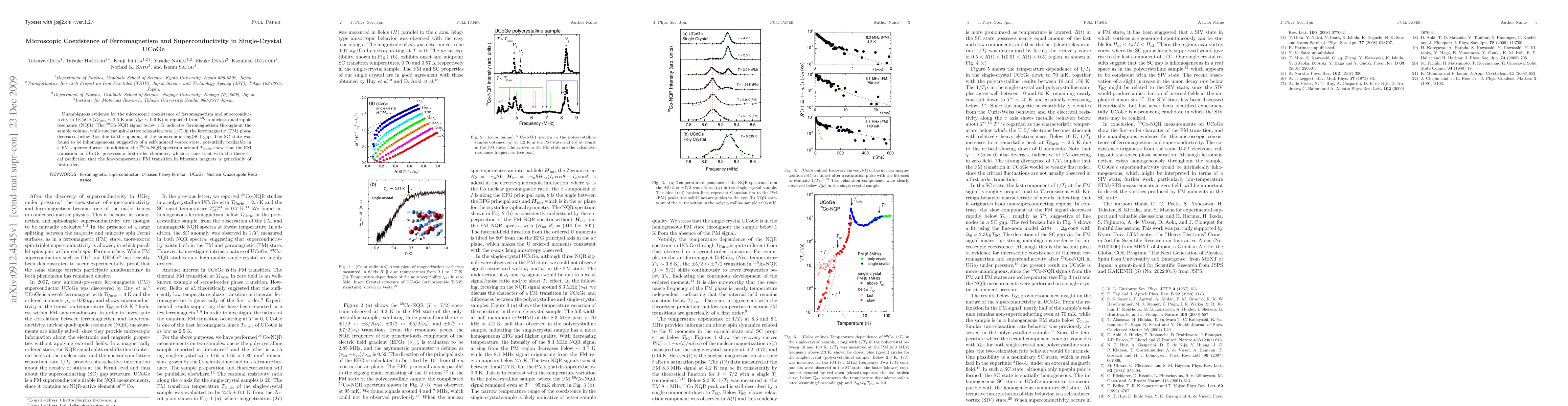 Unambiguous evidence for the microscopic coexistence of ferromagnetism and superconductivity in UCoGe ($T_{\rm Curie} \sim 2.5$ K and $T_{\rm SC}$ $\sim$ 0.6 K) is reported from $^{59}$Co nuclear quadrupole resonance (NQR). The $^{59}$Co-NQR signal below 1 K indicates ferromagnetism throughout the sample volume, while nuclear spin-lattice relaxation rate $1/T_1$ in the ferromagnetic (FM) phase decreases below $T_{\rm SC}$ due to the opening of the superconducting(SC) gap. The SC state was found to be inhomogeneous, suggestive of a self-induced vortex state, potentially realizable in a FM superconductor. In addition, the $^{59}$Co-NQR spectrum around $T_{\rm Curie}$ show that the FM transition in UCoGe possesses a first-order character, which is consistent with the theoretical prediction that the low-temperature FM transition in itinerant magnets is generically of first-order.