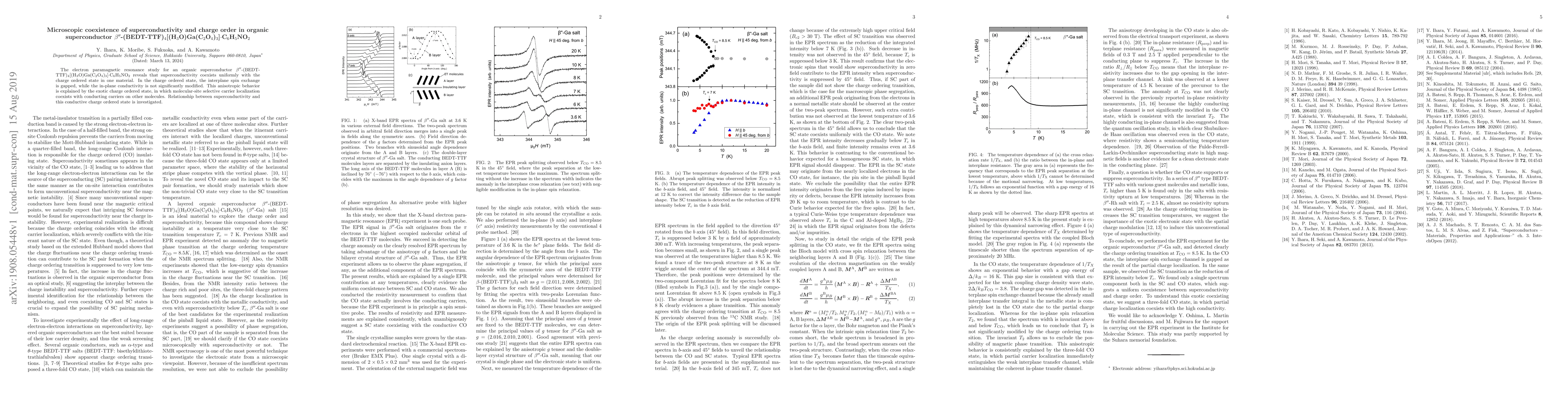The electron paramagnetic resonance study for an organic superconductor $\beta''$-(BEDT-TTF)$_{4}$[(H$_3$O)Ga(C$_2$O$_4$)$_3$]$\cdot$C$_6$H$_5$NO$_2$ reveals that superconductivity coexists uniformly with the charge ordered state in one material. In the charge ordered state, the interplane spin exchange is gapped, while the in-plane conductivity is not significantly modified. This anisotropic behavior is explained by the exotic charge ordered state, in which molecular-site selective carrier localization coexists with conducting carriers on other molecules. Relationship between superconductivity and this conductive charge ordered state is investigated.