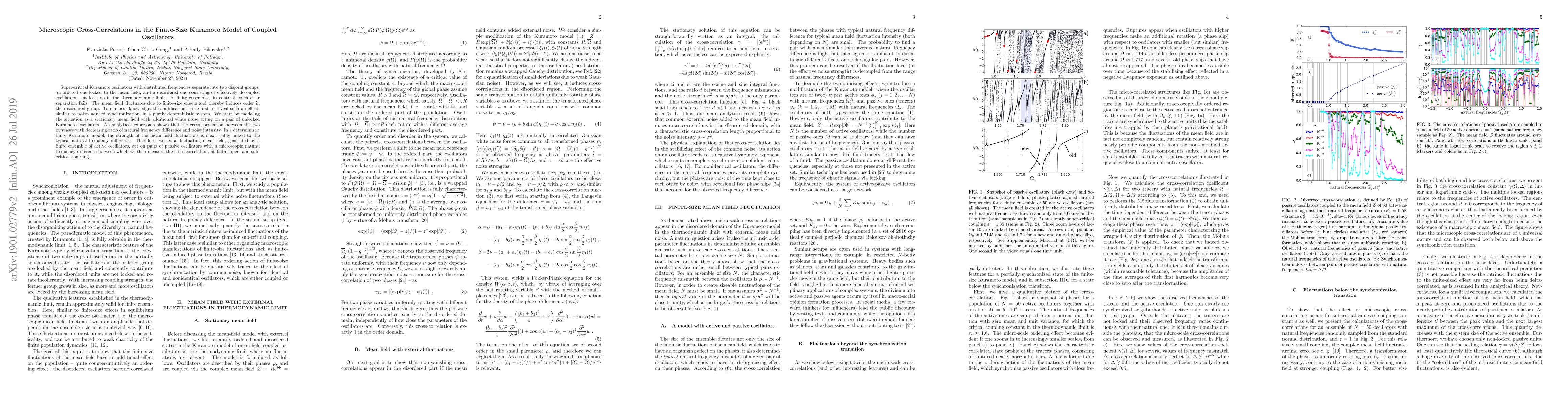 Super-critical Kuramoto oscillators with distributed frequencies separate into two disjoint groups: an ordered one locked to the mean field, and a disordered one consisting of effectively decoupled oscillators -- at least so in the thermodynamic limit. In finite ensembles, in contrast, such clear separation fails: The mean field fluctuates due to finite-size effects and thereby induces order in the disordered group. To our best knowledge, this publication is the first to reveal such an effect, similar to noise-induced synchronization, in a purely deterministic system. We start by modeling the situation as a stationary mean field with additional white noise acting on a pair of unlocked Kuramoto oscillators. An analytical expression shows that the cross-correlation between the two increases with decreasing ratio of natural frequency difference and noise intensity. In a deterministic finite Kuramoto model, the strength of the mean field fluctuations is inextricably linked to the typical natural frequency difference. Therefore, we let a fluctuating mean field, generated by a finite ensemble of active oscillators, act on pairs of passive oscillators with a microscopic natural frequency difference between which we then measure the cross-correlation, at both super- and sub-critical coupling.