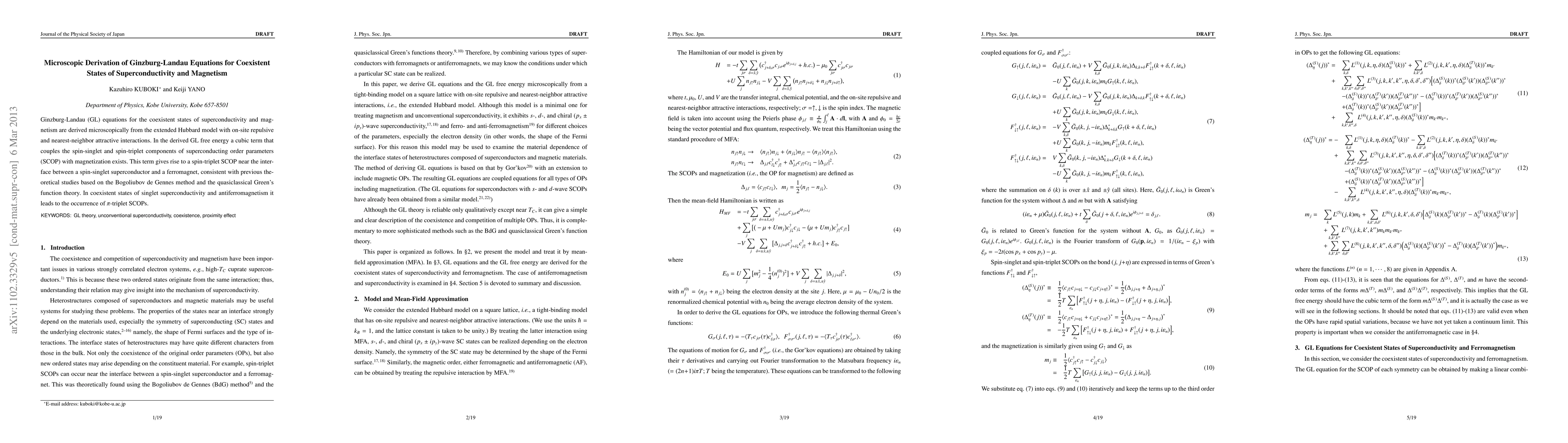 This paper microscopically derives Ginzburg-Landau equations for superconductivity and magnetism coexistence from the extended Hubbard model, revealing a cubic term coupling spin-singlet and spin-triplet superconducting order parameters with magnetization, leading to spin-triplet superconductivity near ferromagnet interfaces and pi-triplet superconductivity near antiferromagnets.