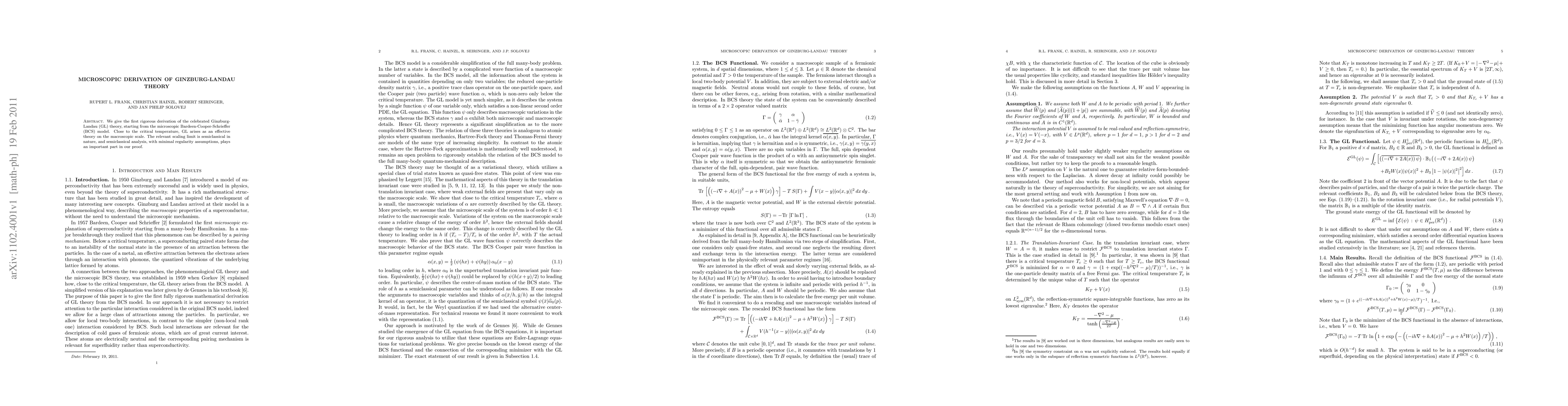 This paper provides the first rigorous derivation of Ginzburg-Landau theory from the microscopic Bardeen-Cooper-Schrieffer model, demonstrating that GL emerges as an effective theory near the critical temperature through a semiclassical scaling limit. Semiclassical analysis underpins the proof with minimal regularity assumptions.