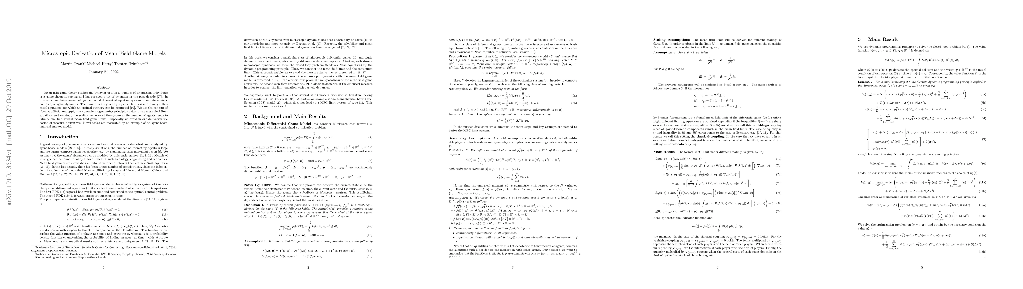 This paper derives mean field game partial differential equation systems from deterministic microscopic agent dynamics using Nash equilibria and dynamic programming, without relying on measure derivatives. The study also explores the scaling behavior of the system as the number of agents approaches infinity, motivated by an agent-based financial market model.