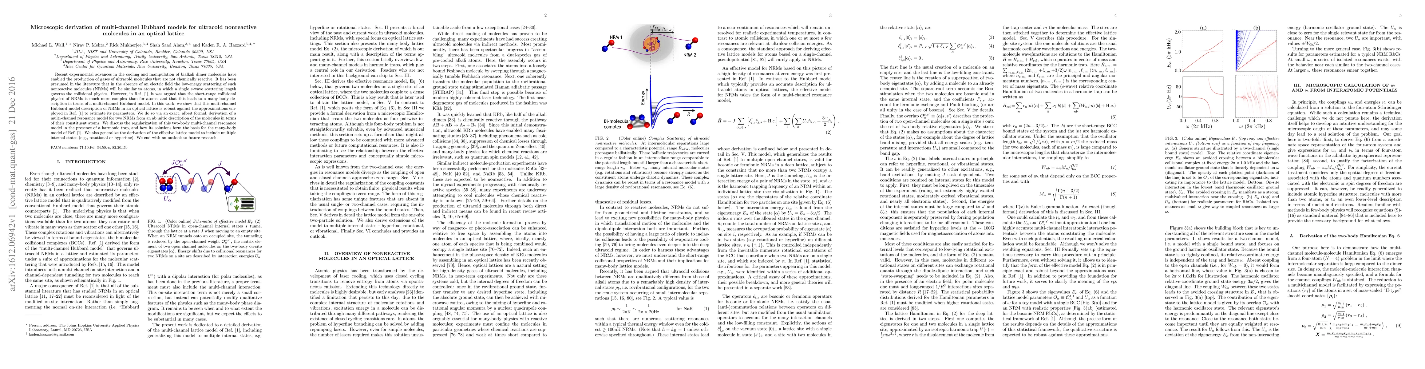 Recent experimental advances in the cooling and manipulation of bialkali dimer molecules have enabled the production of gases of ultracold molecules that are not chemically reactive. It has been presumed in the literature that in the absence of an electric field the low-energy scattering of such nonreactive molecules (NRMs) will be similar to atoms, in which a single $s$-wave scattering length governs the collisional physics. However, in Ref. [1], it was argued that the short-range collisional physics of NRMs is much more complex than for atoms, and that this leads to a many-body description in terms of a multi-channel Hubbard model. In this work, we show that this multi-channel Hubbard model description of NRMs in an optical lattice is robust against the approximations employed in Ref. [1] to estimate its parameters. We do so via an exact, albeit formal, derivation of a multi-channel resonance model for two NRMs from an ab initio description of the molecules in terms of their constituent atoms. We discuss the regularization of this two-body multi-channel resonance model in the presence of a harmonic trap, and how its solutions form the basis for the many-body model of Ref. [1]. We also generalize the derivation of the effective lattice model to include multiple internal states (e.g., rotational or hyperfine). We end with an outlook to future research.