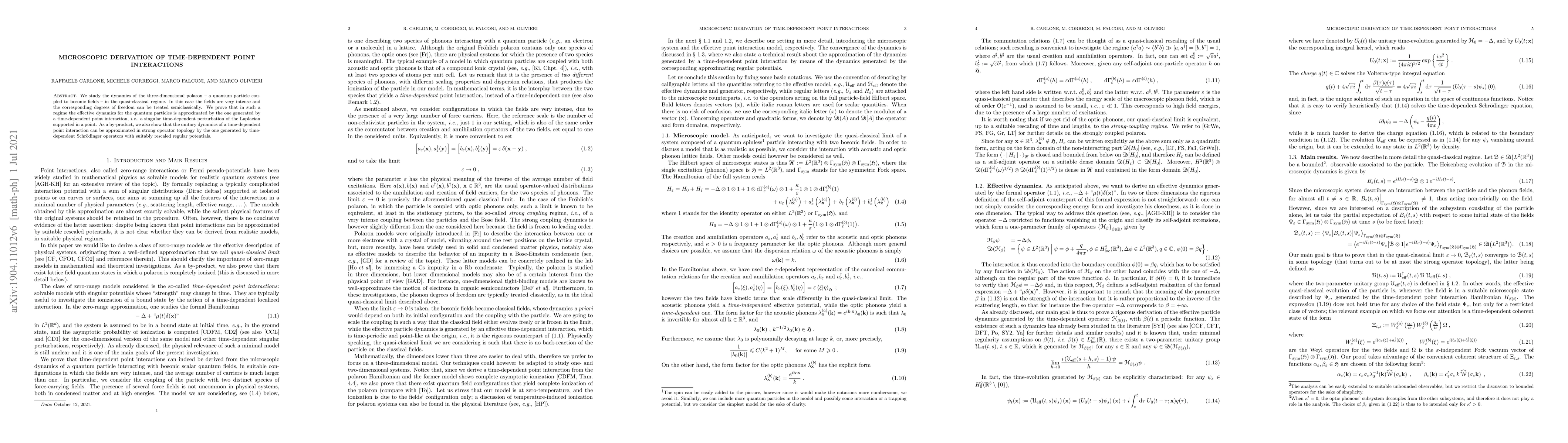 Researchers studied the behavior of a quantum particle coupled to intense bosonic fields in the quasi-classical regime, finding that its dynamics can be approximated by a time-dependent point interaction - a singular perturbation of the Laplacian supported at a single point.