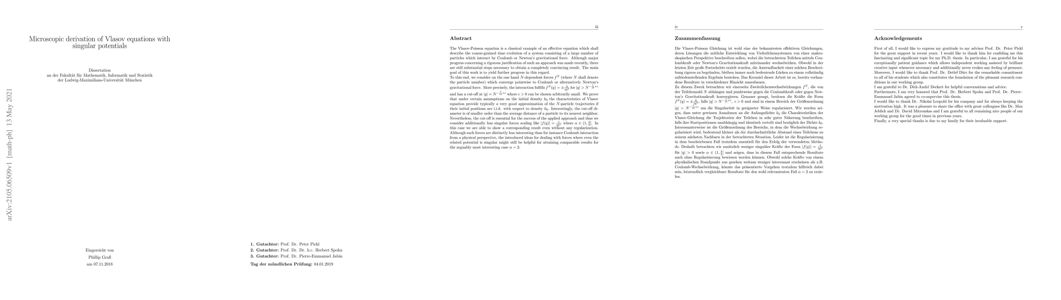 This paper aims to rigorously justify the Vlasov-Poisson equation for systems with singular potentials, showing that the Vlasov equation's characteristics approximate $N$-particle trajectories under certain initial conditions. The study also explores less singular forces, providing insights into handling singular potentials for more physically relevant cases like Coulomb interaction.