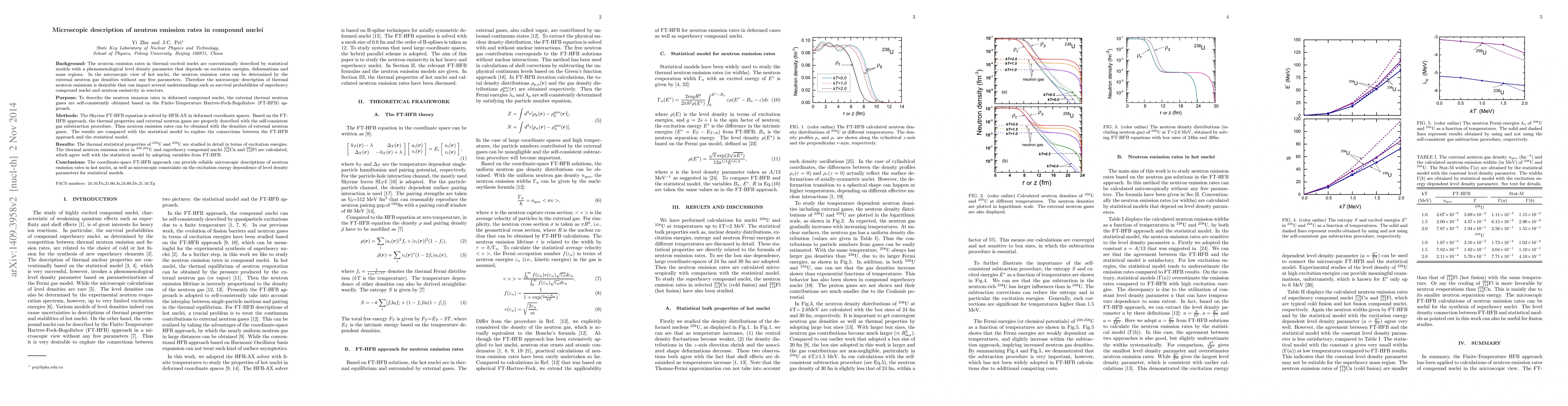 This paper presents a microscopic approach using the Finite-Temperature Hartree-Fock-Bogoliubov (FT-HFB) method to describe neutron emission rates in thermally excited nuclei, providing a self-consistent description without free parameters. The results are compared with statistical models, showing good agreement for nuclei like $^{238}$U, $^{258}$U, and superheavy nuclei.