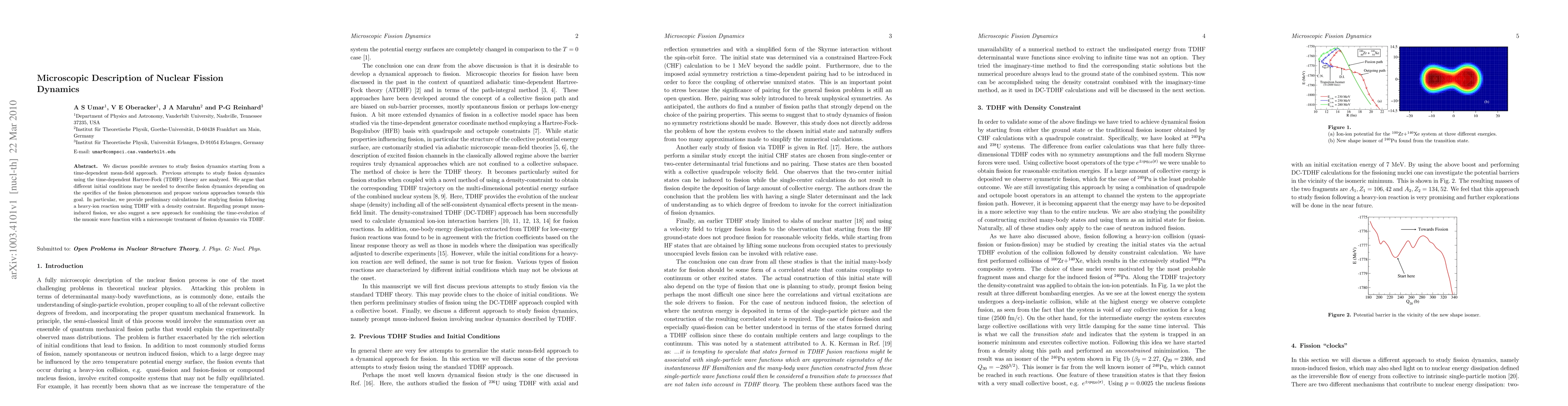 We discuss possible avenues to study fission dynamics starting from a time-dependent mean-field approach. Previous attempts to study fission dynamics using the time-dependent Hartree-Fock (TDHF) theory are analyzed. We argue that different initial conditions may be needed to describe fission dynamics depending on the specifics of the fission phenomenon and propose various approaches towards this goal. In particular, we provide preliminary calculations for studying fission following a heavy-ion reaction using TDHF with a density contraint. Regarding prompt muon-induced fission, we also suggest a new approach for combining the time-evolution of the muonic wave function with a microscopic treatment of fission dynamics via TDHF.