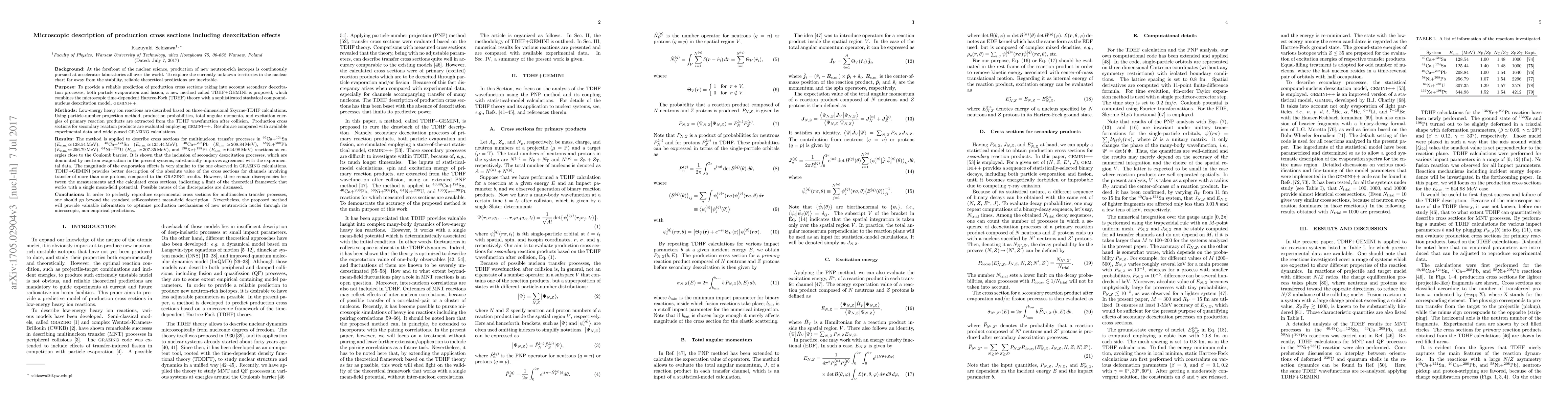 This paper proposes a new method, TDHF+GEMINI, combining microscopic time-dependent Hartree-Fock theory with a statistical deexcitation model to predict production cross sections for neutron-rich isotopes. The method improves agreement with experimental data for multinucleon transfer processes, though discrepancies remain, suggesting the need for a more advanced theoretical framework.
