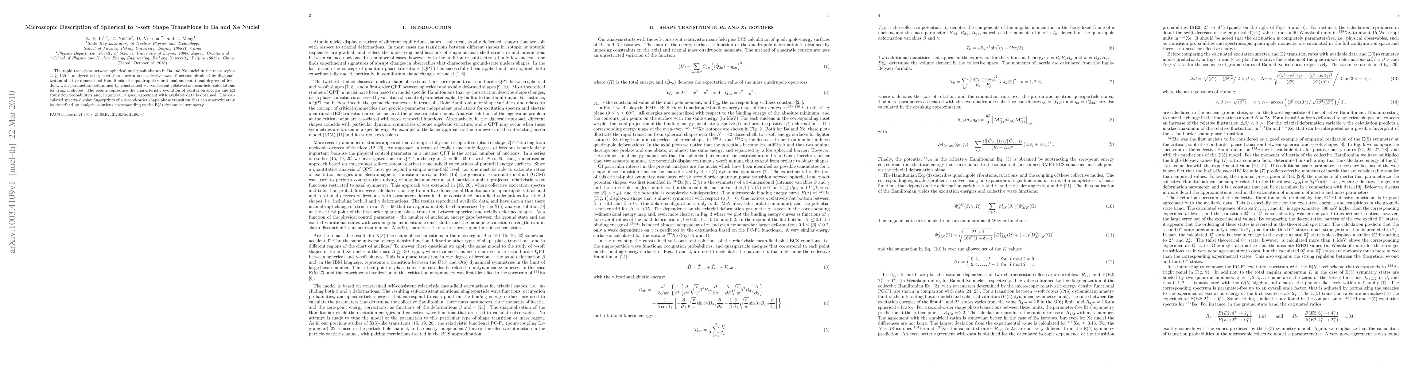 This paper investigates the shape transitions in Ba and Xe nuclei using a five-dimensional Hamiltonian model, showing a rapid shift between spherical and gamma-soft shapes. The model, calibrated by relativistic mean-field calculations, accurately reproduces the evolution of excitation spectra and E2 transition probabilities, indicating a second-order shape phase transition akin to the E(5) dynamical symmetry.