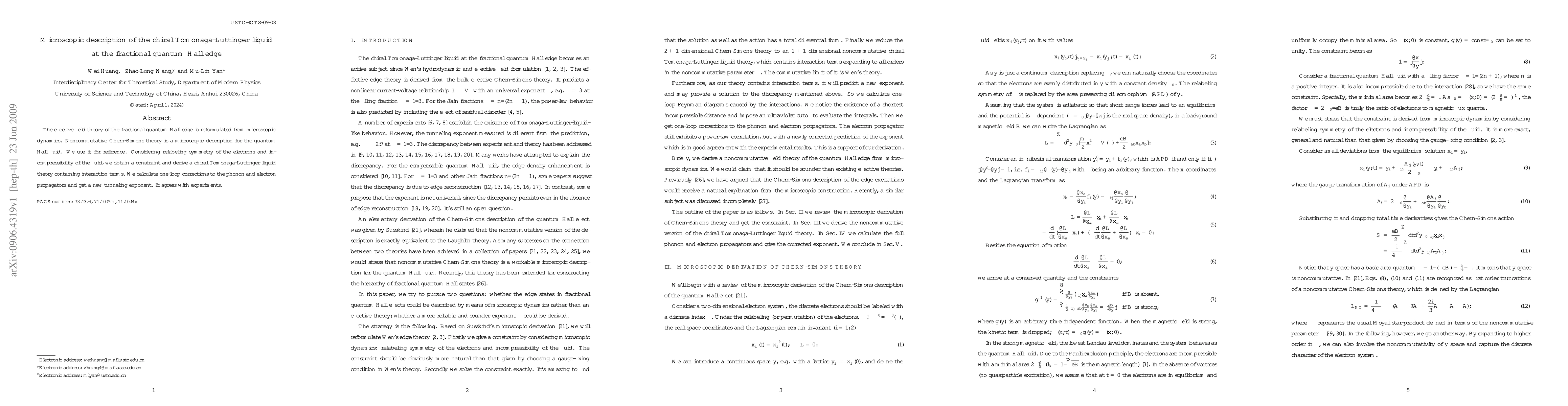 The effective field theory of the fractional quantum Hall edge is reformulated from microscopic dynamics. Noncommutative Chern-Simons theory is a microscopic description for the quantum Hall fluid. We use it for reference. Considering relabeling symmetry of the electrons and incompressibility of the fluid, we obtain a constraint and derive a chiral Tomonaga-Luttinger liquid theory containing interaction terms. We calculate one-loop corrections to the phonon and electron propagators and get a new tunneling exponent. It agrees with experiments.