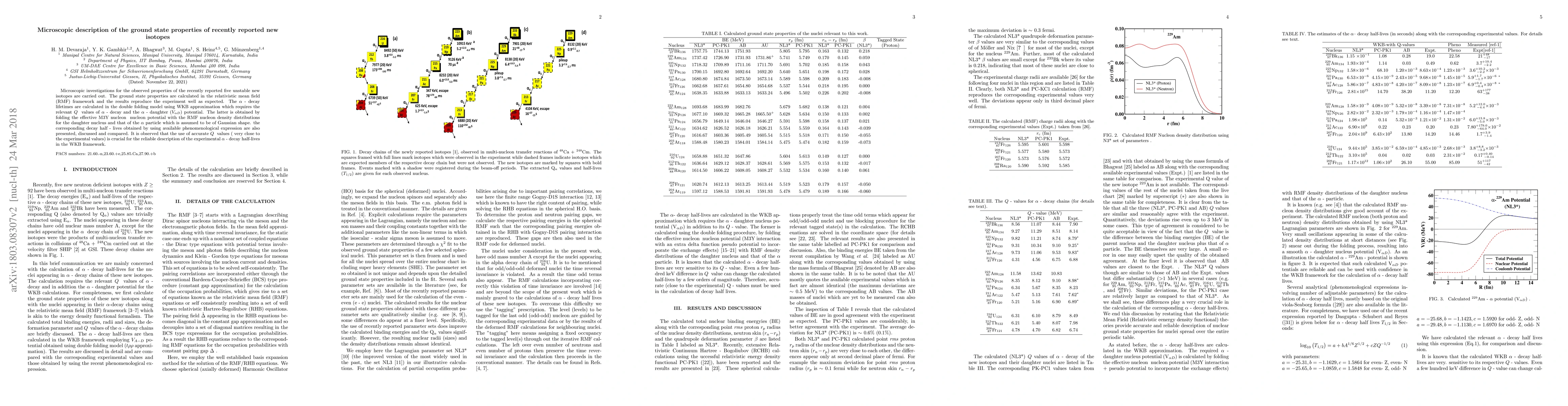 Microscopic investigations for the observed properties of the recently reported five unstable new isotopes are carried out. The ground state properties are calculated in the relativistic mean field (RMF) framework and the results reproduce the experiment well as expected. The {\alpha} - decay lifetimes are calculated in the double folding model using WKB approximation which requires the relevant Q values of {\alpha} - decay and the {\alpha} - daughter potential. The latter is obtained by folding the effective M3Y nucleon nucleon potential with the RMF nucleon density distributions for the daughter nucleus and that of the {\alpha} particle which is assumed to be of Gaussian shape. the corresponding decay half - lives obtained by using available phenomenological expression are also presented, discussed and compared. It is observed that the Q values calculated in the RMF framework , though reasonably agree with the experiment, are not accurate enough for the reliable WKB calculation of decay half- lives. We therefore, advocate that the use of accurate (e.g. experimental) Q values is crucial for the reliable description of the experimental {\alpha} - decay half-lives.