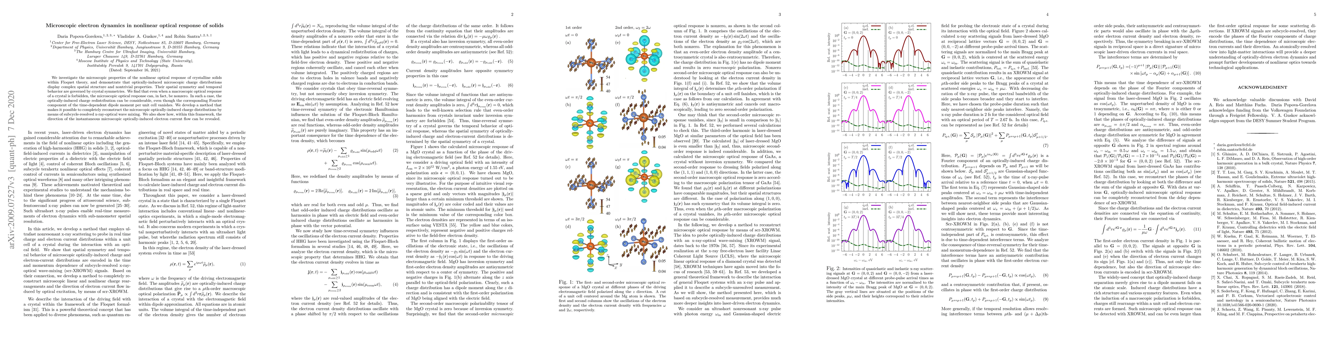 This paper explores the microscopic electron dynamics in the nonlinear optical response of crystalline solids using Floquet theory, revealing that optically-induced charge distributions exhibit complex spatial structures governed by crystal symmetries. The study demonstrates that even when macroscopic optical response is forbidden, significant microscopic optical responses can occur, and introduces a method to reconstruct these charge distributions via subcycle-resolved x-ray-optical wave mixing.