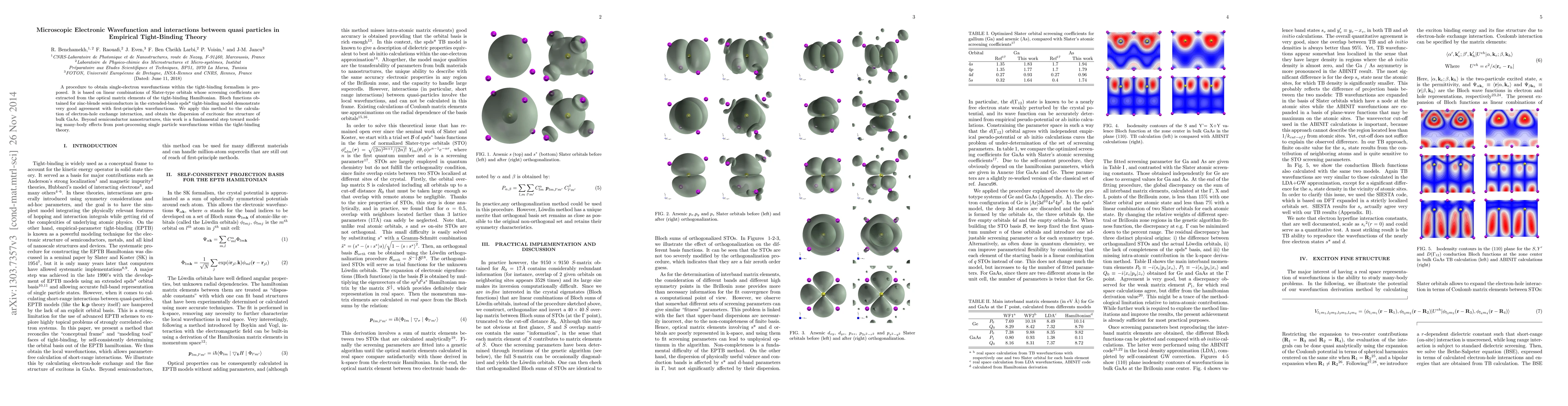 This paper proposes a method to derive single-electron wavefunctions using empirical tight-binding theory, showing good agreement with first-principles calculations. It applies this method to calculate electron-hole exchange interaction and excitonic fine structure in bulk GaAs, paving the way for modeling many-body effects in semiconductor nanostructures.