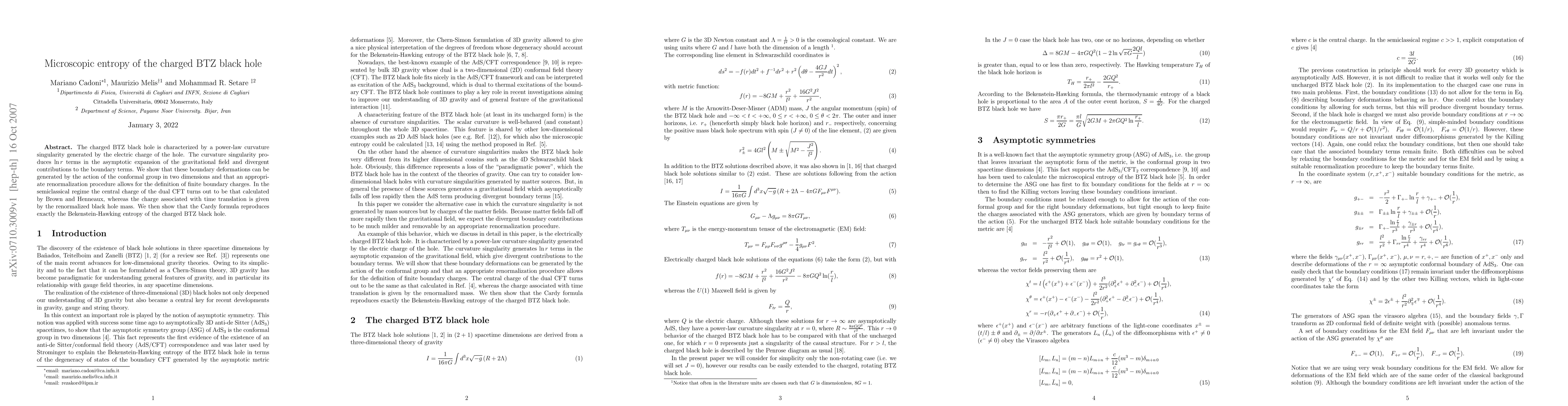 This research examines the microscopic entropy of the charged BTZ black hole, revealing how its power-law curvature singularity influences gravitational field expansions and boundary terms. Through a renormalization process, finite boundary charges are defined, and the Cardy formula is shown to precisely match the Bekenstein-Hawking entropy.