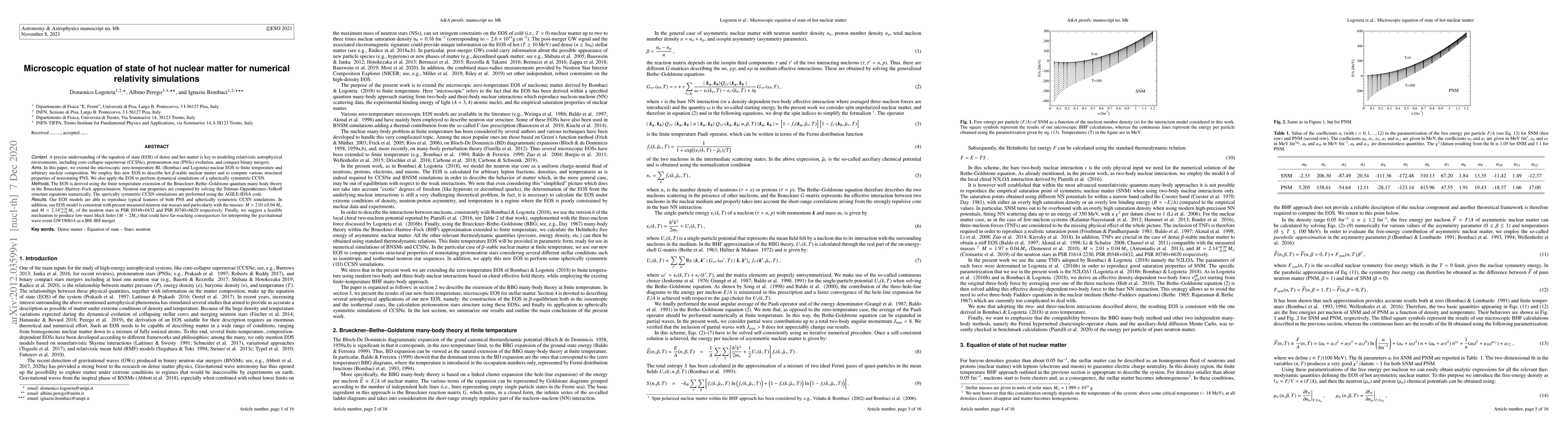 This paper extends the microscopic zero-temperature BL nuclear equation of state to finite temperature and arbitrary nuclear composition, employing it to model hot, β-stable nuclear matter and simulate core-collapse supernovae and protoneutron star evolution. The derived EOS is consistent with observed neutron star masses and suggests a mechanism for producing low-mass black holes.