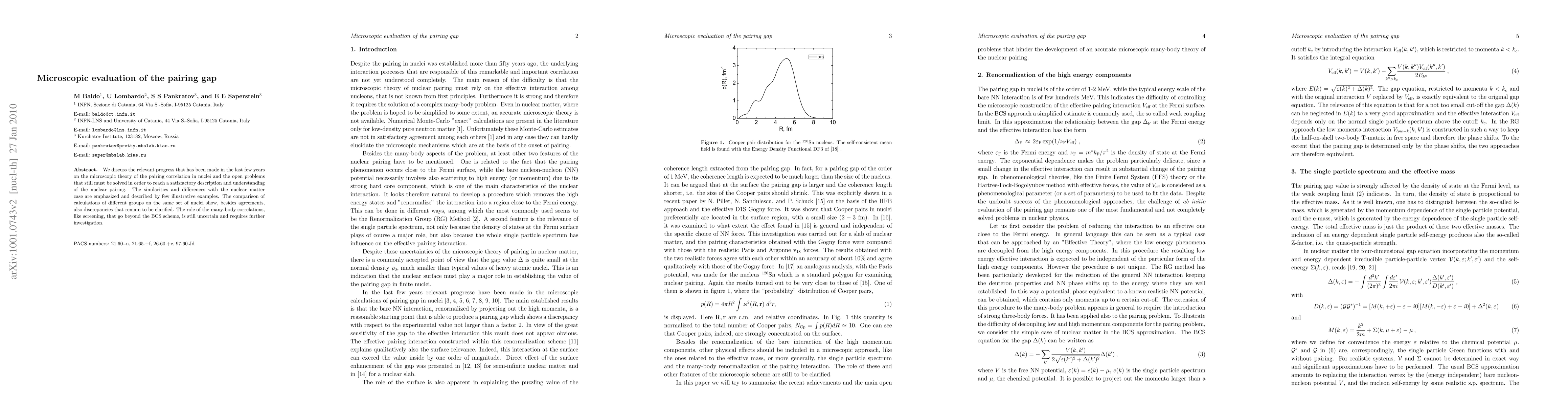 We discuss the relevant progress that has been made in the last few years on the microscopic theory of the pairing correlation in nuclei and the open problems that still must be solved in order to reach a satisfactory description and understanding of the nuclear pairing. The similarities and differences with the nuclear matter case are emphasized and described by few illustrative examples. The comparison of calculations of different groups on the same set of nuclei show, besides agreements, also discrepancies that remain to be clarified. The role of the many-body correlations, like screening, that go beyond the BCS scheme, is still uncertain and requires further investigation.