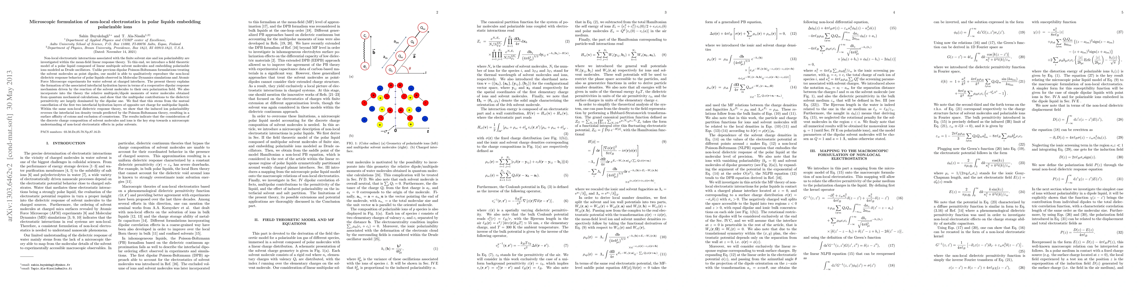 This paper develops a field theoretic model to investigate non-local electrostatic interactions in polar liquids, incorporating polarizable ions and multipole solvent molecules. The model reveals the formation of interfacial hydration layers and alters ion density trends compared to traditional Poisson-Boltzmann theory, emphasizing the importance of considering solvent and ion polarizability for accurate electrostatic predictions.