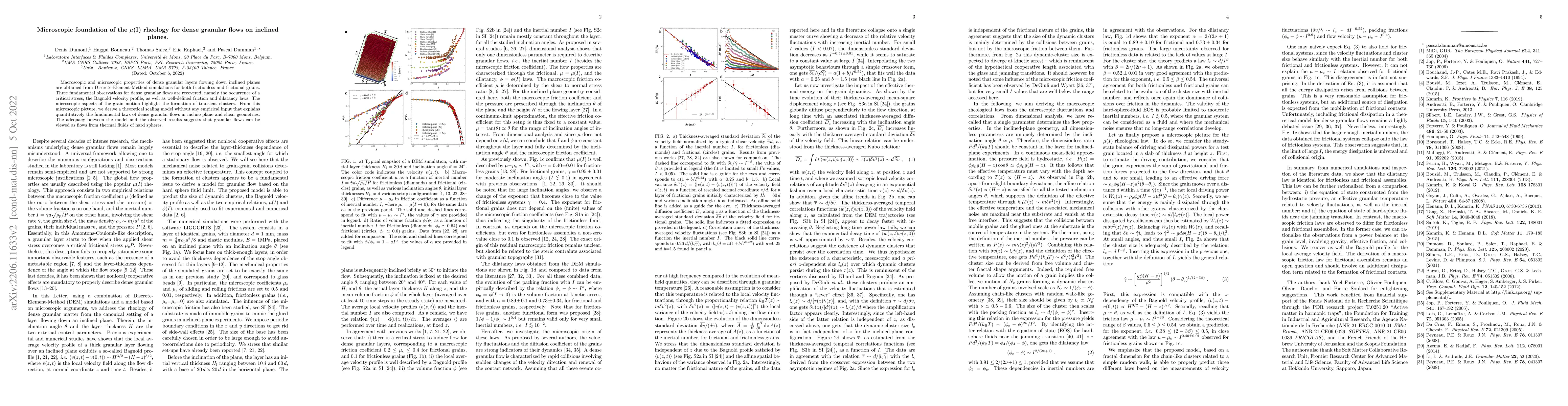 This paper uses Discrete-Element-Method simulations to study dense granular flows on inclined planes, identifying key macroscopic and microscopic properties. It derives a theoretical scaling model explaining fundamental laws of granular flows, suggesting they behave similarly to thermal fluids of hard spheres.