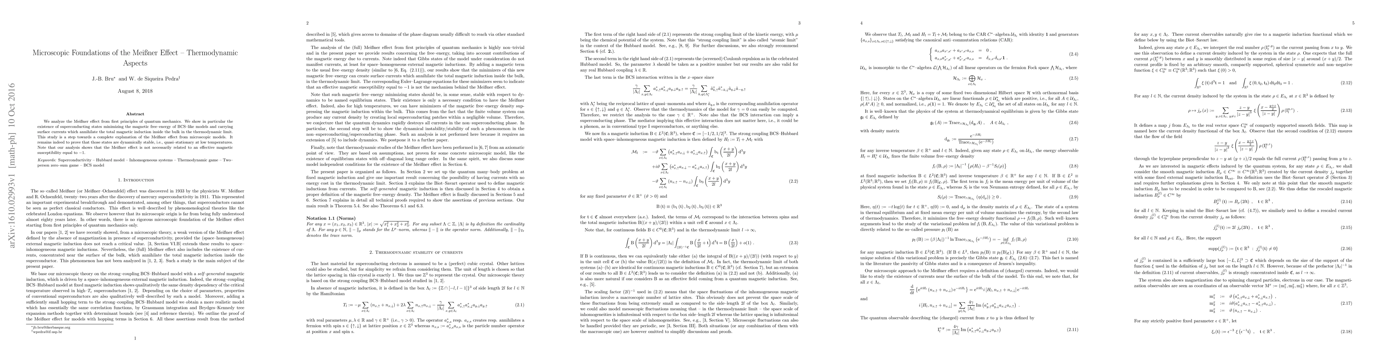 We analyze the Mei\ss ner effect from first principles of quantum mechanics. We show in particular the existence of superconducting states minimizing the magnetic free-energy of BCS-like models and carrying surface currents which annihilate the total magnetic induction inside the bulk in the thermodynamic limit. This study is a step towards a complete explanation of the Mei\ss ner effect from microscopic models. It remains indeed to prove that those states are dynamically stable, i.e., quasi-stationary at low temperatures. Note that our analysis shows that the Mei\ss ner effect is not necessarily related to an effective magnetic susceptibility equal to $-1$.